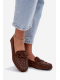 Elegantní mokasíny Prissine v hnědé barvě z eko semiše s jemným zdobením jsou kombinací komfortu a stylu. Plochá podrážka a měkký materiál zajišťují pohodlné nošení po celý den, zatímco decentní ozdoby dodávají botám sofistikovaný a ženský vzhled. Hlavní benefity: Plochá podrážka pro pohodlí po celý den Eko semiš zajišťující měkkost a lehkost Dekorativní detaily pro elegantní vzhled Snadné obouvání a nadčasový design Využití: Ideální do práce, na procházky, setkání s přáteli nebo volnočasové aktivity, kdy chcete vypadat stylově. Tip: K hnědým mokasínám Prissine doporučujeme kombinovat světlé kalhoty, sukně nebo šaty a doplnit je jemnou kabelkou pro elegantní outfit. Velikostní tabulka: