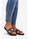 Dámské pantofle Adivrae v černém provedení jsou stylovou a pohodlnou volbou pro teplé dny. Plochá podešev zajišťuje stabilní a přirozený došlap, zatímco dekorativní zdobení dodává obuvi jemný a módní akcent. Černá barva je nadčasová a univerzálně kombinovatelná s různými outfity – od ležérních až po elegantnější.