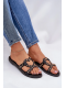 Černé zdobené pantofle skvěle doplní jednoduché outfity – zkombinujte je s bílými kalhotami, šaty nebo denimovými kraťasy pro elegantní letní look.