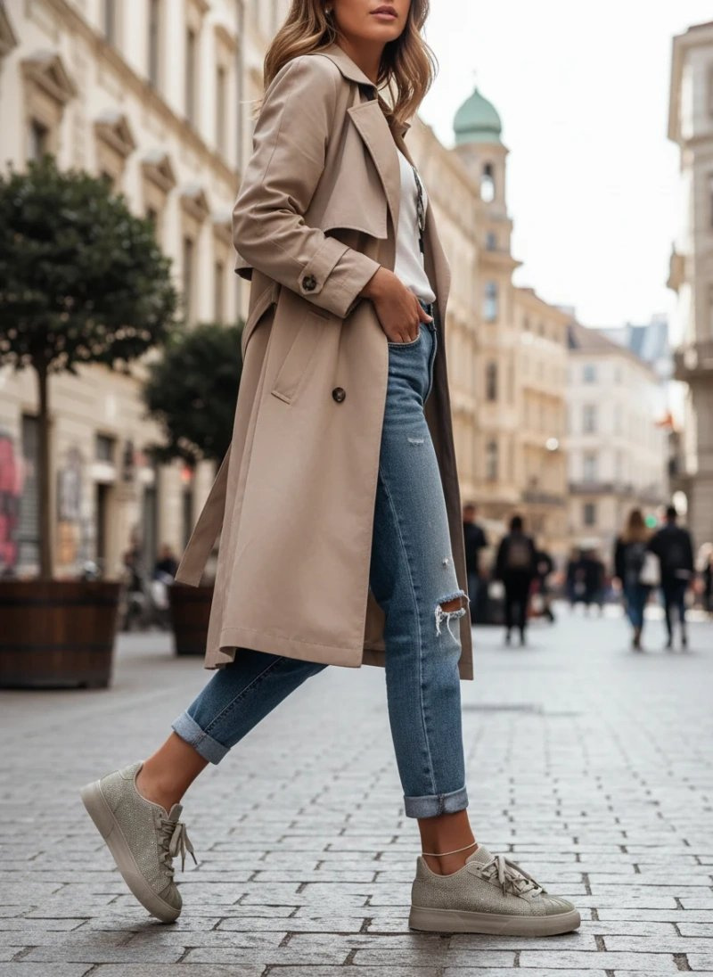 Kombinujte s džínami, bílými kalhotami nebo jednoduchými šaty, aby barva tenisek krásně vynikla.