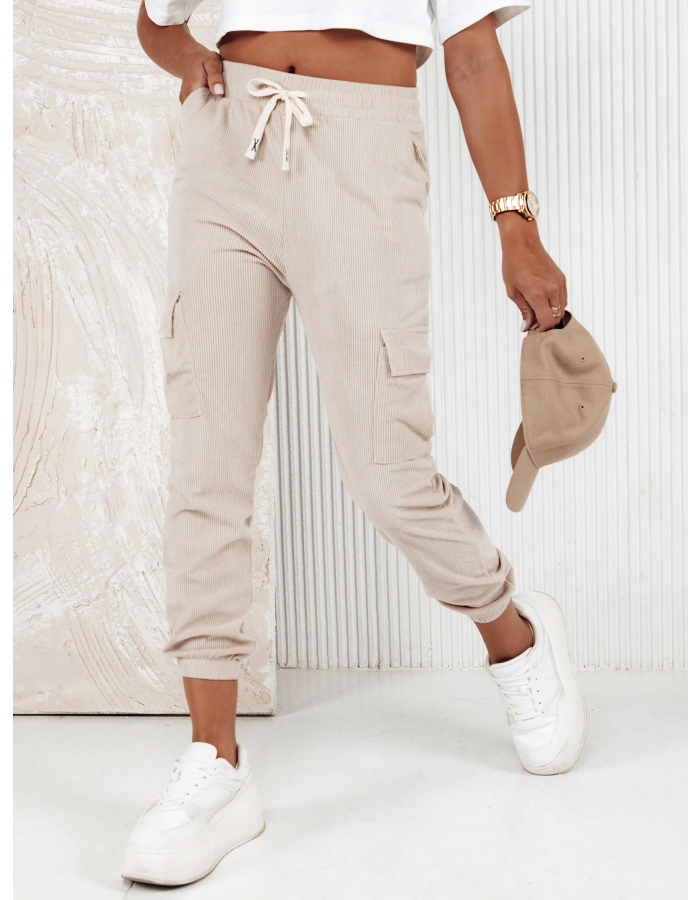 Dámské žebrované kalhoty CHICCORD béžové Dstreet UY2174 XL/XXL