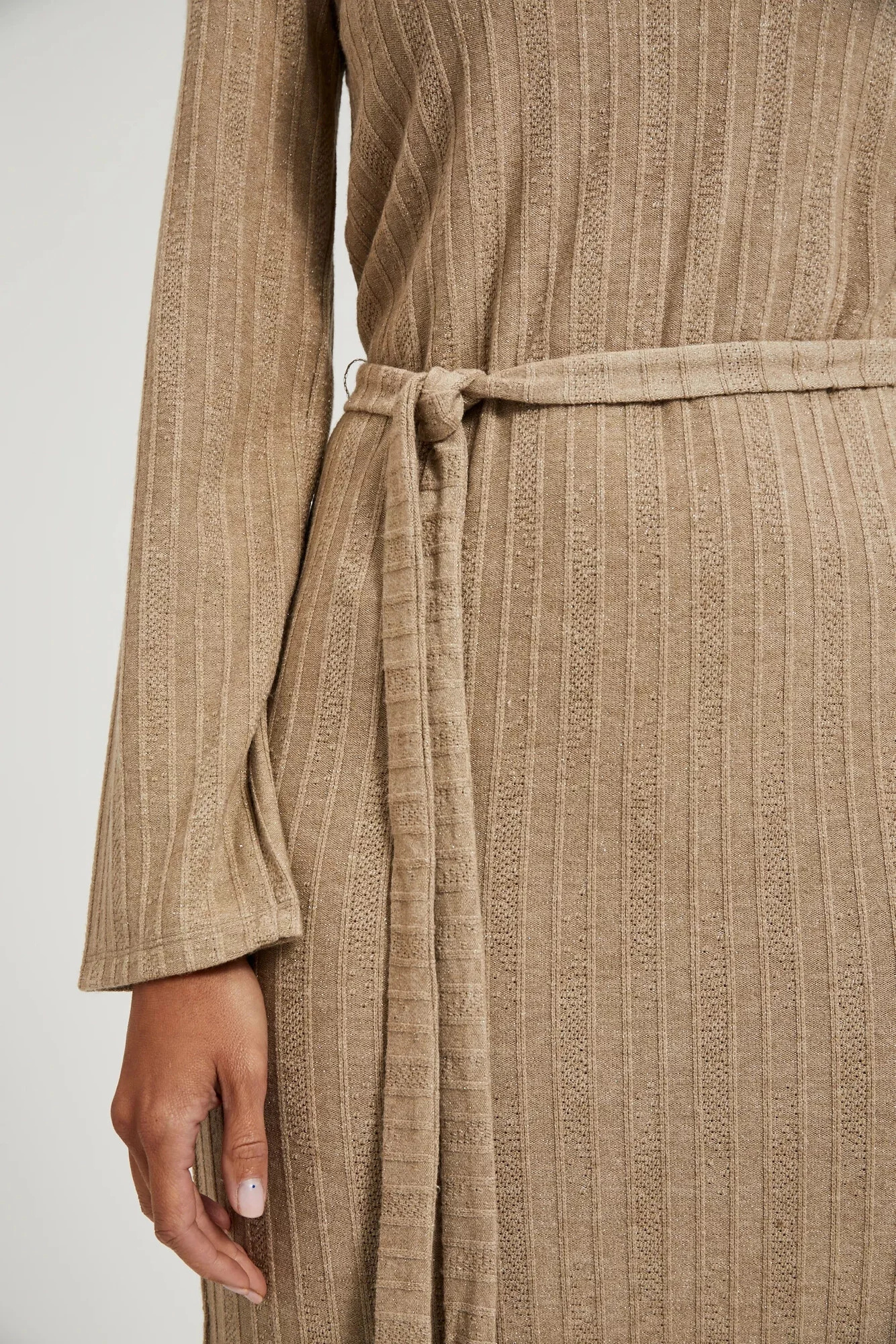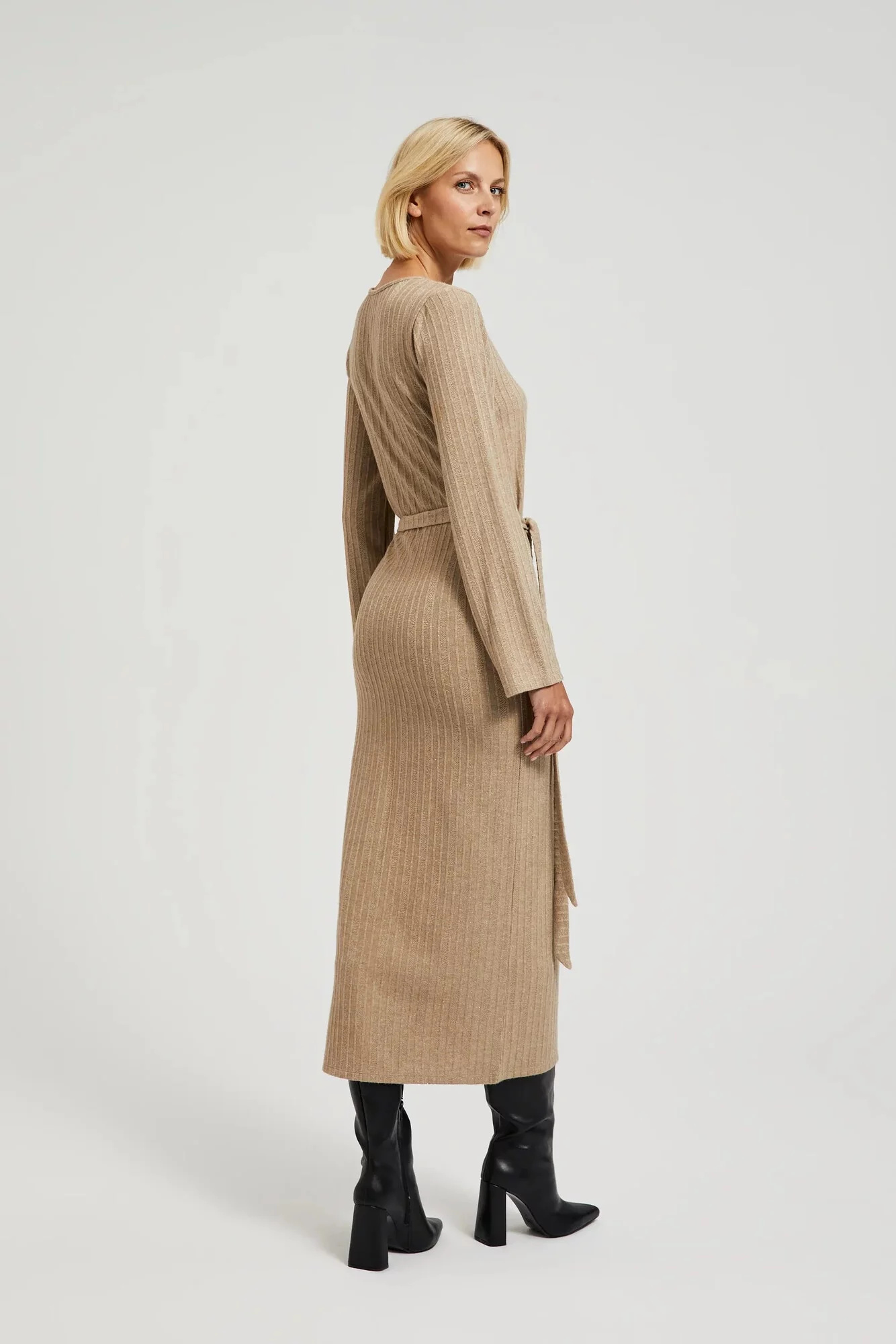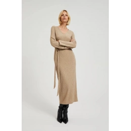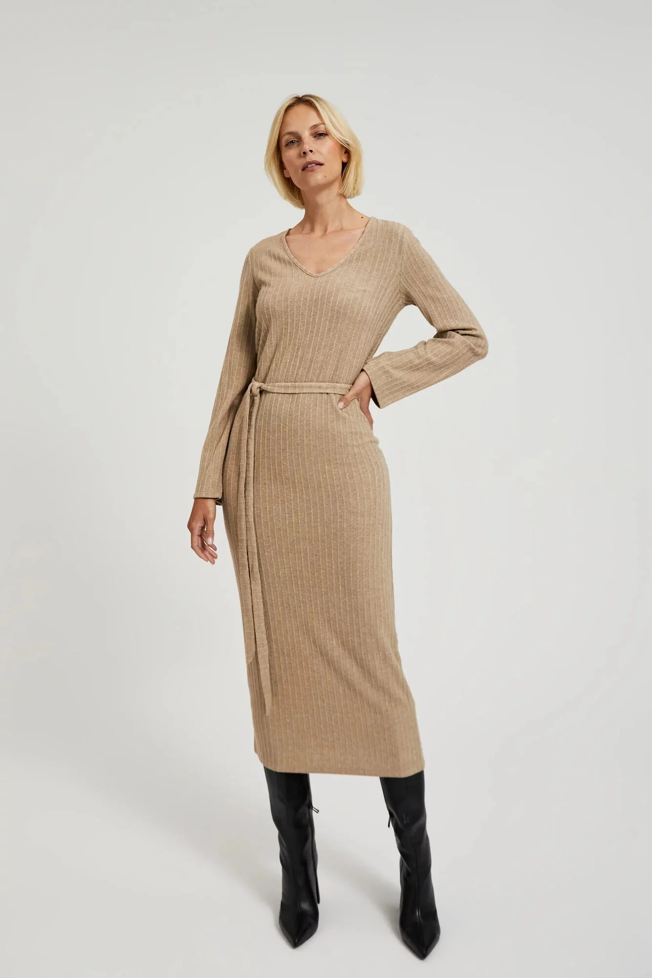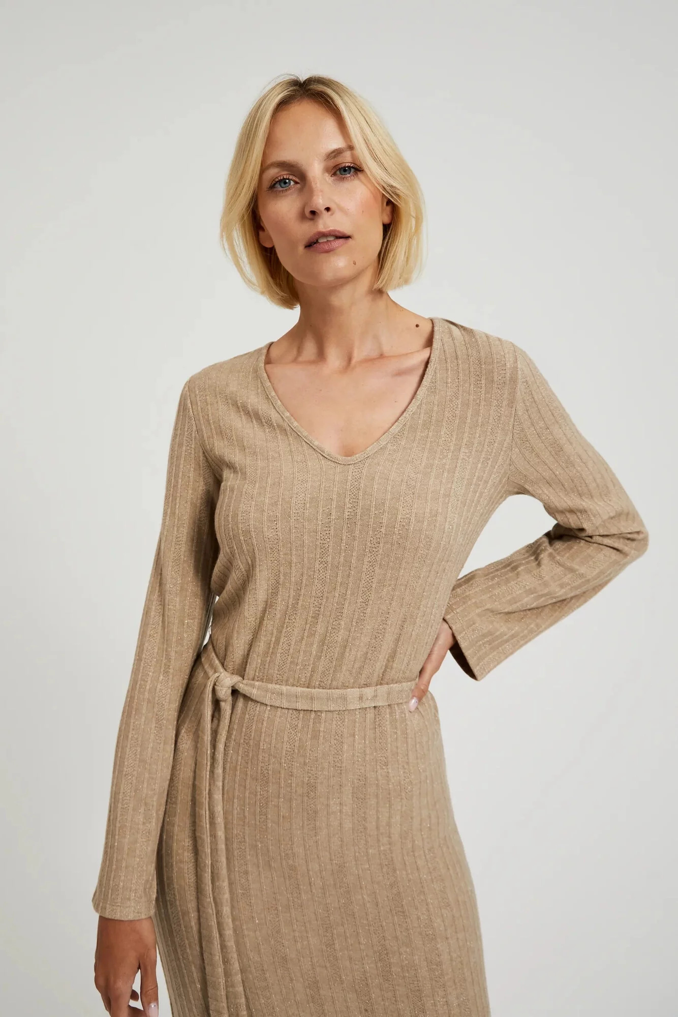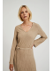 55%VISKÓZA, 19%POLYAMID, 15%POLYESTER, 7%METALIZOVANÁ NIT, 4%ELASTAN Elegantní dámské šaty v béžové barvě, vyrobené z vysoce kvalitní viskózy.