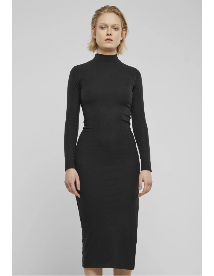 Šaty mají jednoduchý, ale elegantní střih, který kopíruje postavu a sahá do poloviny lýtek. Díky minimalistickému designu a kvalitnímu materiálu jsou tyto šaty ideální pro různé příležitosti, ať už se jedná o formální událost nebo večerní vycházku. Vysoký límec přidává šatům na sofistikovanosti, zatímco dlouhé rukávy poskytují komfort a eleganci. Tento kousek je nadčasový a univerzální, snadno kombinovatelný s různými doplňky.