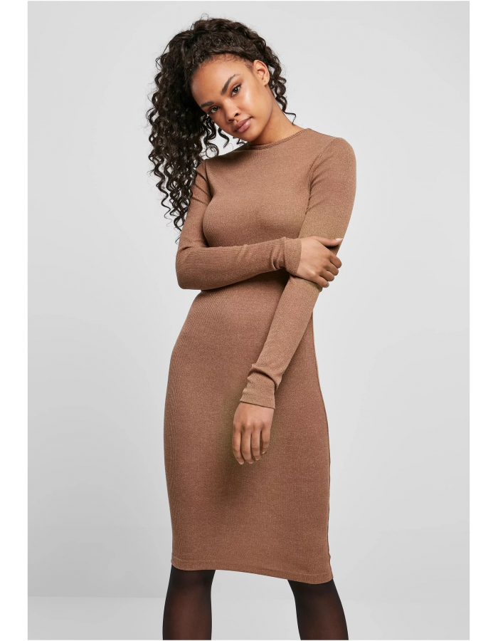 Dámské žebrové šaty URBAN CLASSICS - hnědé Grösse: L