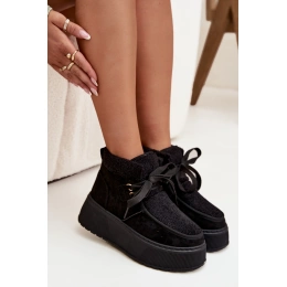 Dámské zimní boty Florivelle v elegantní černé barvě spojují teplý komfort s moderním designem. Zvýšená platforma dodává stabilitu a pohodlí na kluzkém terénu, zatímco měkké kožíškové (futerko) zakončení a zateplení uvnitř udržuje nohy v teple i v chladných dnech. Tyto boty jsou ideální pro zimní počasí — kombinují praktickou funkčnost s esteticky atraktivním vzhledem.