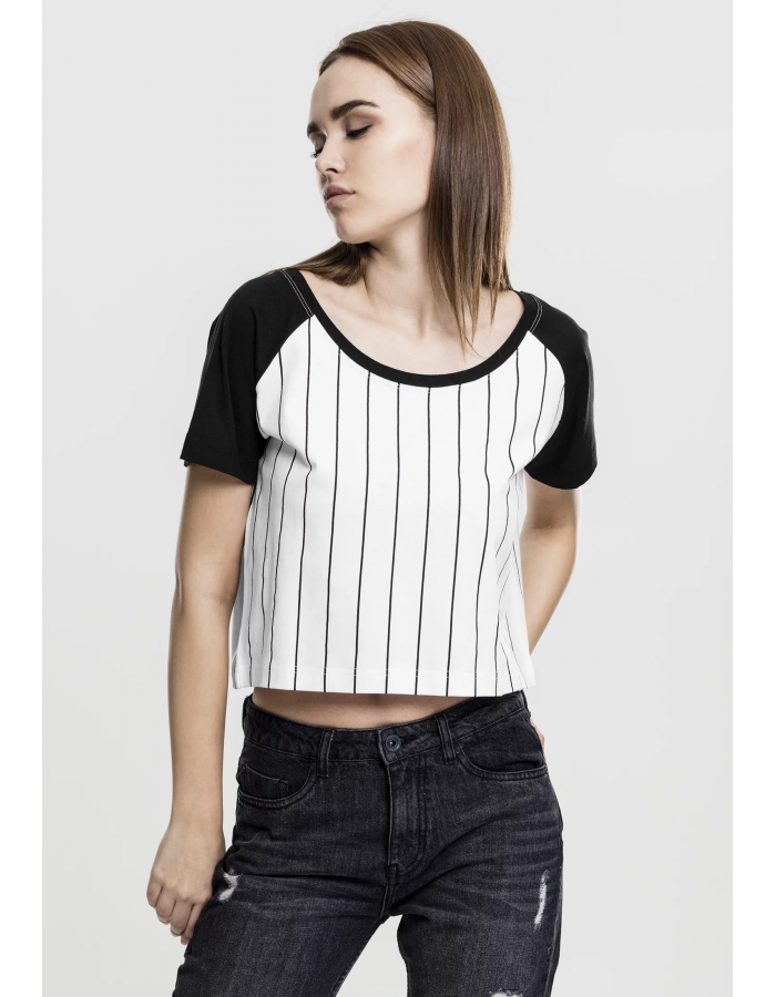 Rádi udáváte tón a říkáte ostatním, kam v módě a sportu jít? Nové dámské tričko Baseball střihu umí obojí zároveň. Toto tričko je nápadně sportovní díky typickému baseballovému pruhovanému vzhledu a dodá každému outfitu potřebný šmrnc. Příjemný lehce pasový střih a trendy zkrácený vzhled jsou další dva poutače, které vynikají osvědčenou kvalitou URBAN CLASSICS.