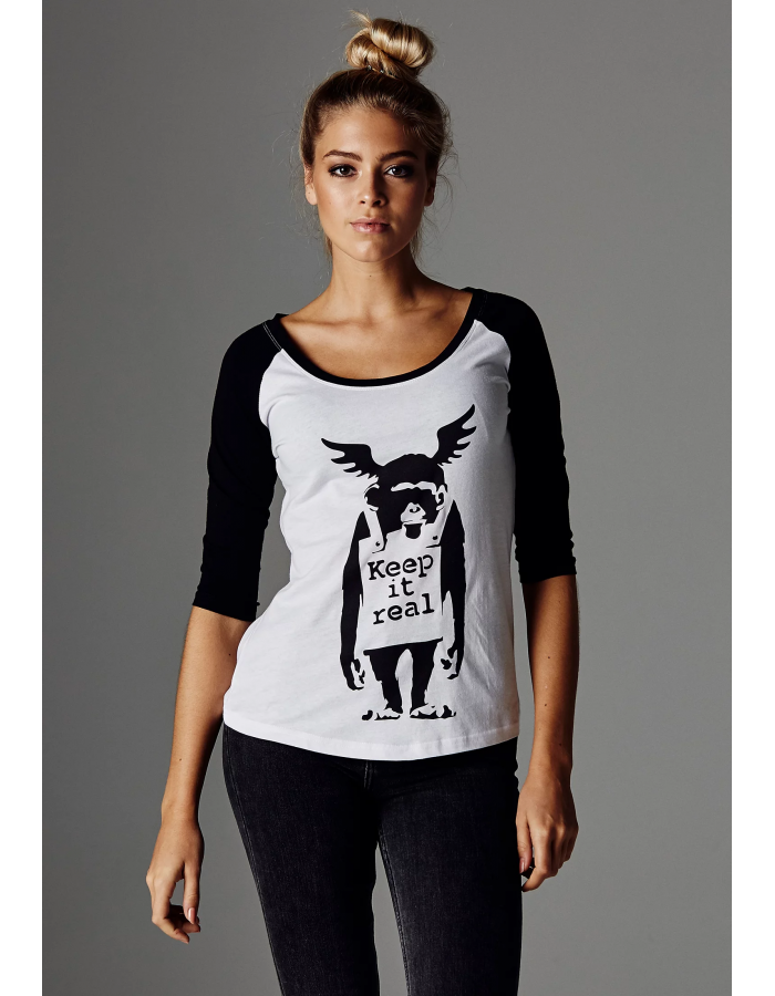 Dámské značkové tričko Banksy´s Graffiti Ape Raglan Wht/blk