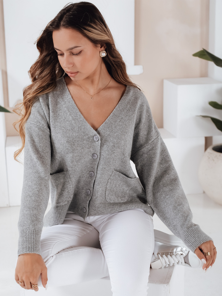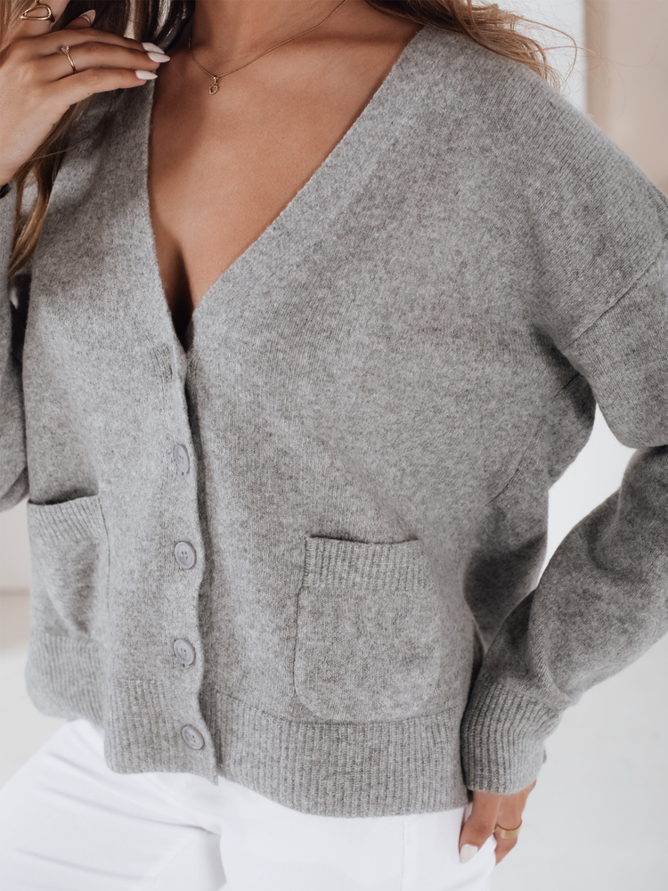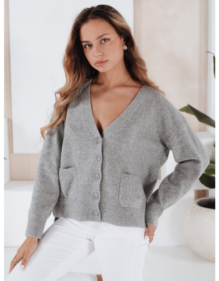 Klasyczny kardigan o luźniejszym kroju, idealny na chłodniejsze dni i uniwersalny w stylizacji. Model SORELIE łączy komfort dzianiny z praktycznymi detalami, takimi jak kieszenie i dekolt w szpic. Pasuje zarówno do casualowych, jak i bardziej dopracowanych zestawów.
