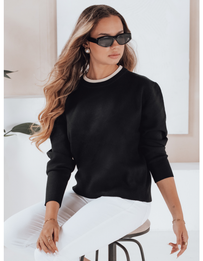 Sweter DARMILA to minimalistyczna propozycja na co dzień, która łączy wygodę z uniwersalnym stylem. Gładki materiał, prosty krój i kontrastowe wykończenie przy dekolcie tworzą bazę do wielu codziennych stylizacji.