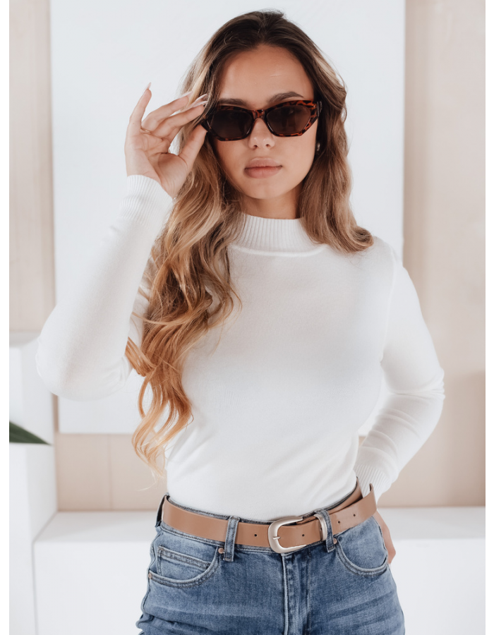 Minimalistyczny, klasyczny fason w formie półgolfu doskonale sprawdzi się jako baza wielu codziennych i bardziej eleganckich stylizacji. Dobrze dopasowuje się do sylwetki i zachowuje swój kształt po praniu, co czyni go praktycznym wyborem na sezon przejściowy.