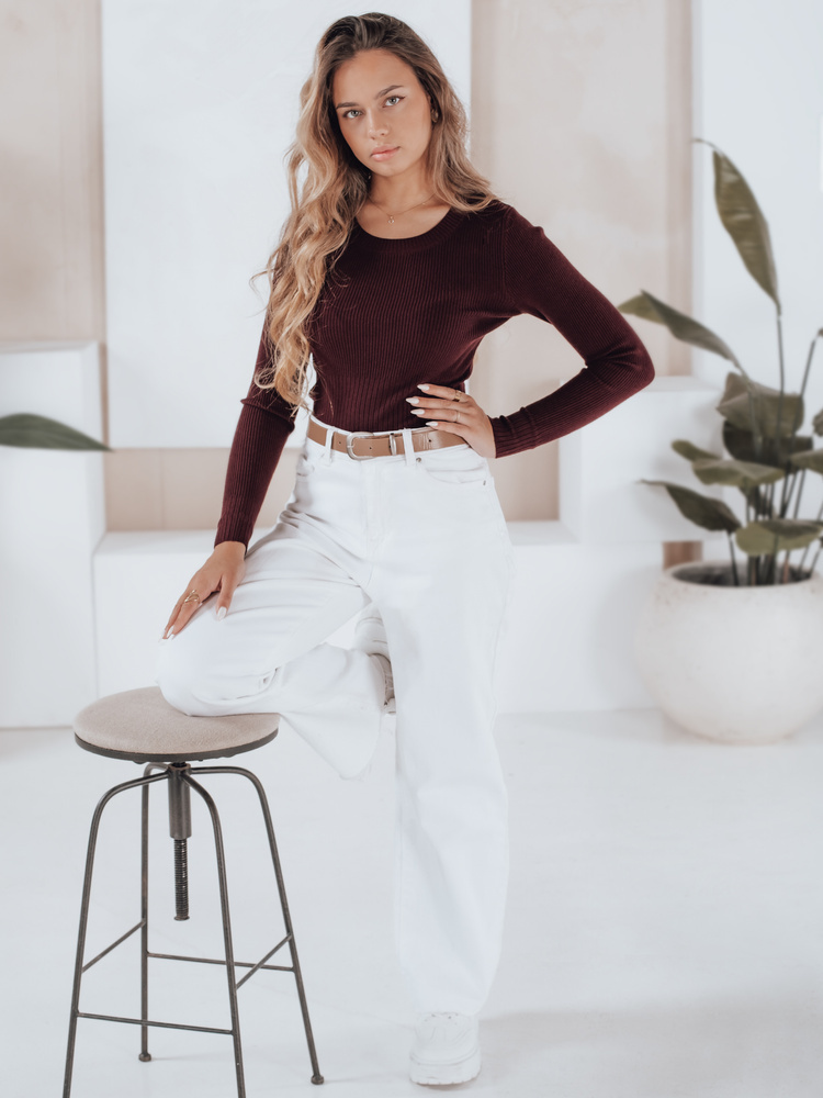 Damski sweter prążkowany NOLVIE bordowy