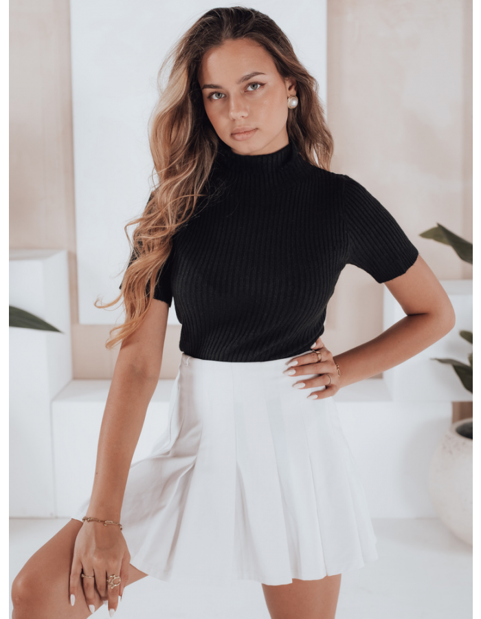 Damski sweter prążkowany z krótkim rękawem GIRLGLORY czarny