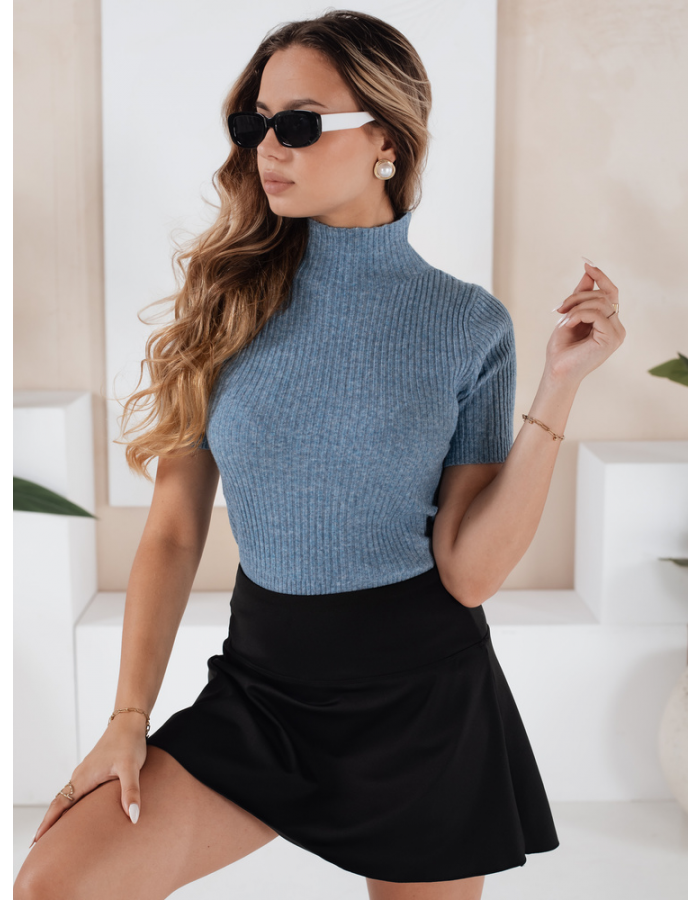 Damski sweter prążkowany z krótkim rękawem GIRLGLORY niebieski
