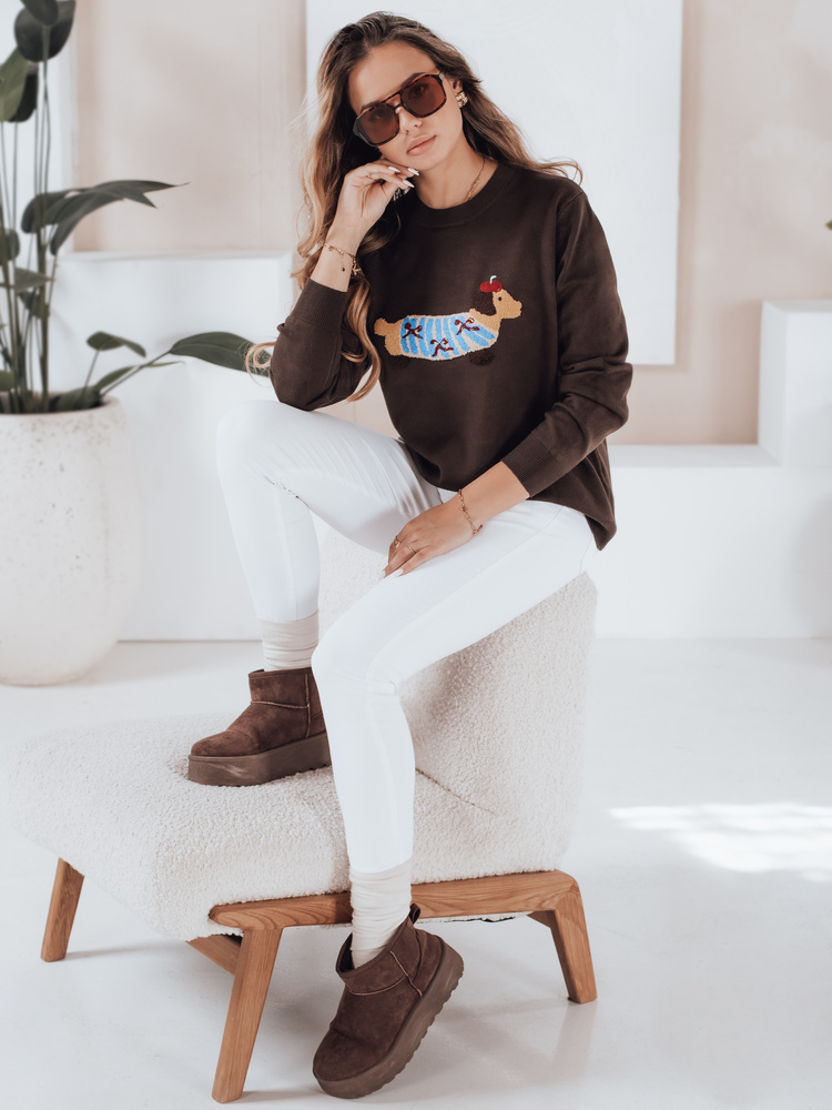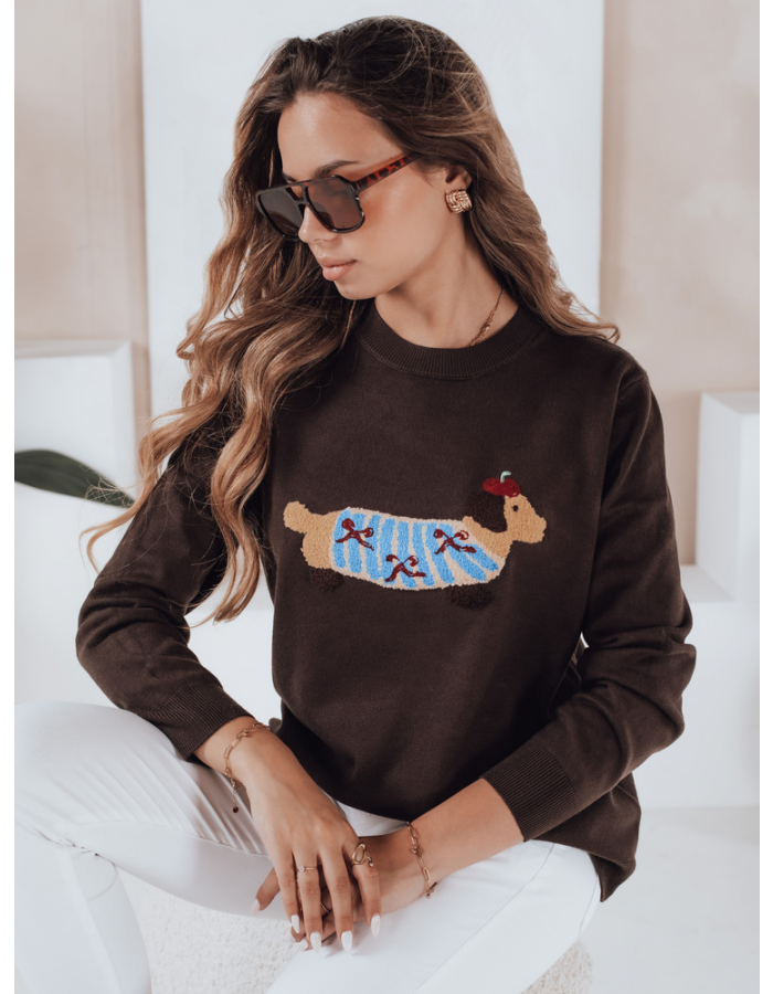 Damski sweter z aplikacją psa CHICPAWS brązowy