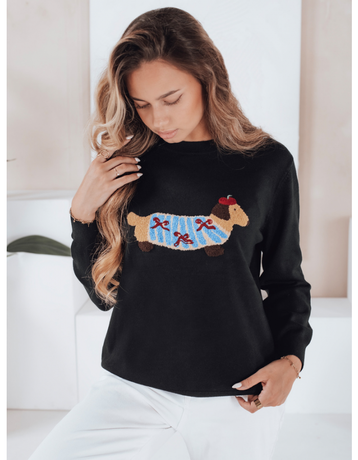 Damski sweter z aplikacją psa CHICPAWS czarny