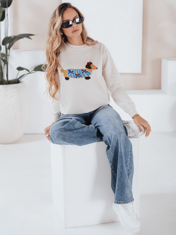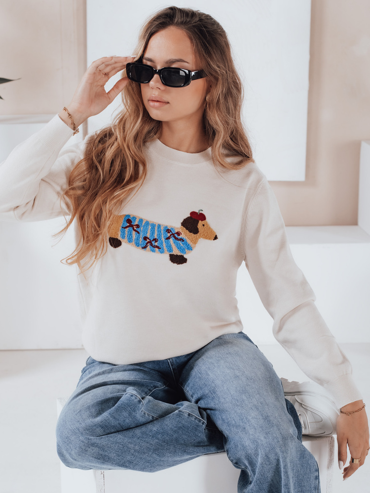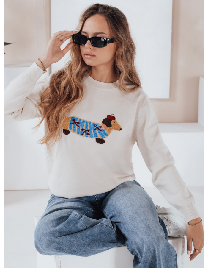 Damski sweter z aplikacją psa CHICPAWS kremowy