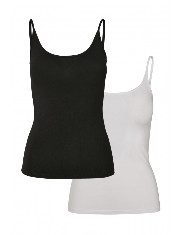 Jak je známo, mít základy je nutnost. Tyto pohodlné bavlněné topy mají integrované malé množství elastanu, aby nabízely ideální střih. Sedí na postavě, jsou dlouhého střihu a sahají přes hýždě. Úzká špagetová ramínka a hluboké výřezy vpředu i vzadu umožňují dostatek vzduchu a slunce k pohlazení vaší pokožky. Dvojité balení obsahuje horní část v černé a jednu v bílé barvě.