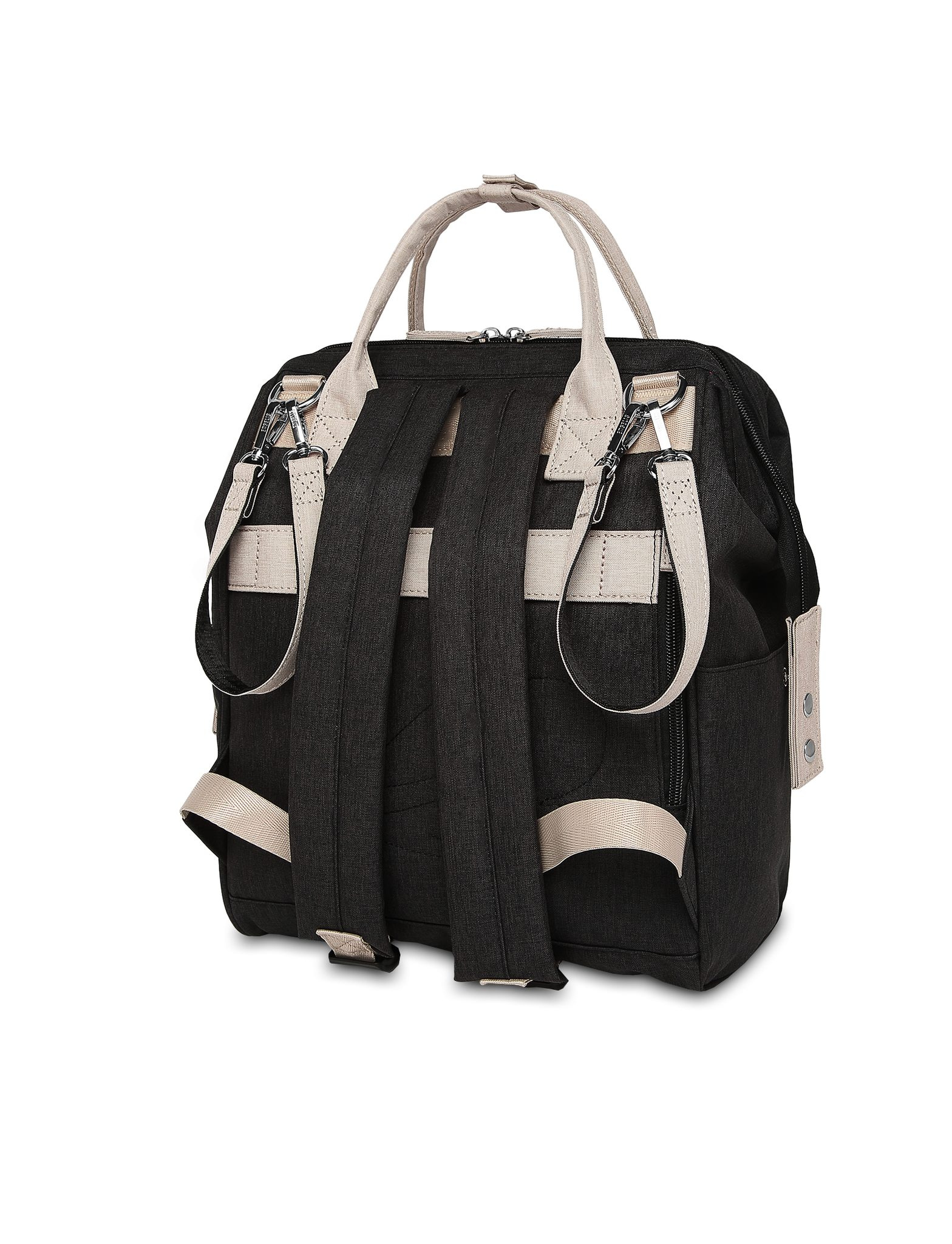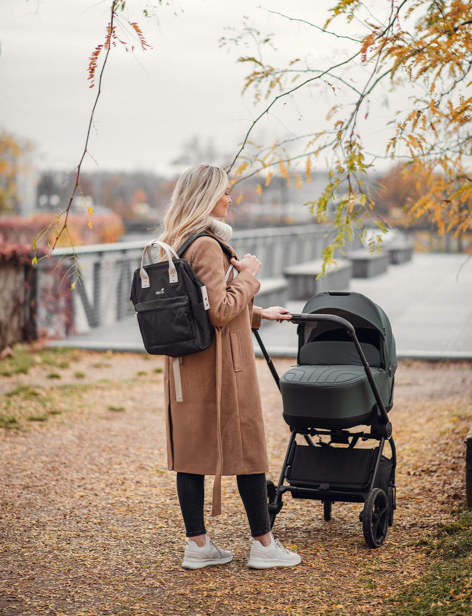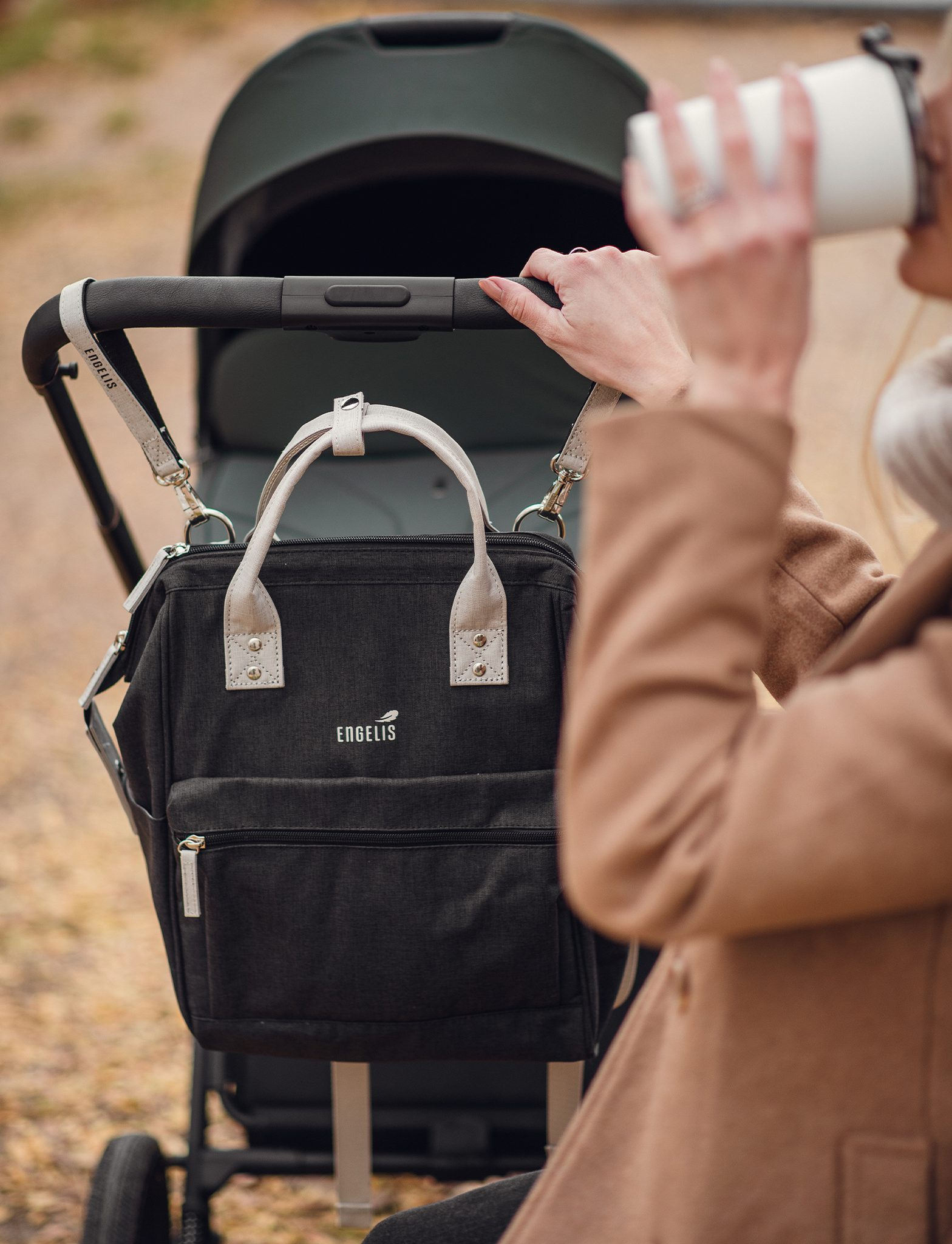 Batoh, který otevřeš dokořán a hned vidíš, kde co je. Pevný horní rám drží tvar, takže se v něm dobře hledá i tehdy, když druhou rukou vedeš kočárek. Velká přední kapsa pojme věci, které potřebuješ mít po ruce, a dvojice pevných uch usnadní rychlé přenášení mezi domem, autem a hřištěm. Odolný materiál, čistý design a praktičnost, která se hodí do každodenního života rodičů v pohybu.