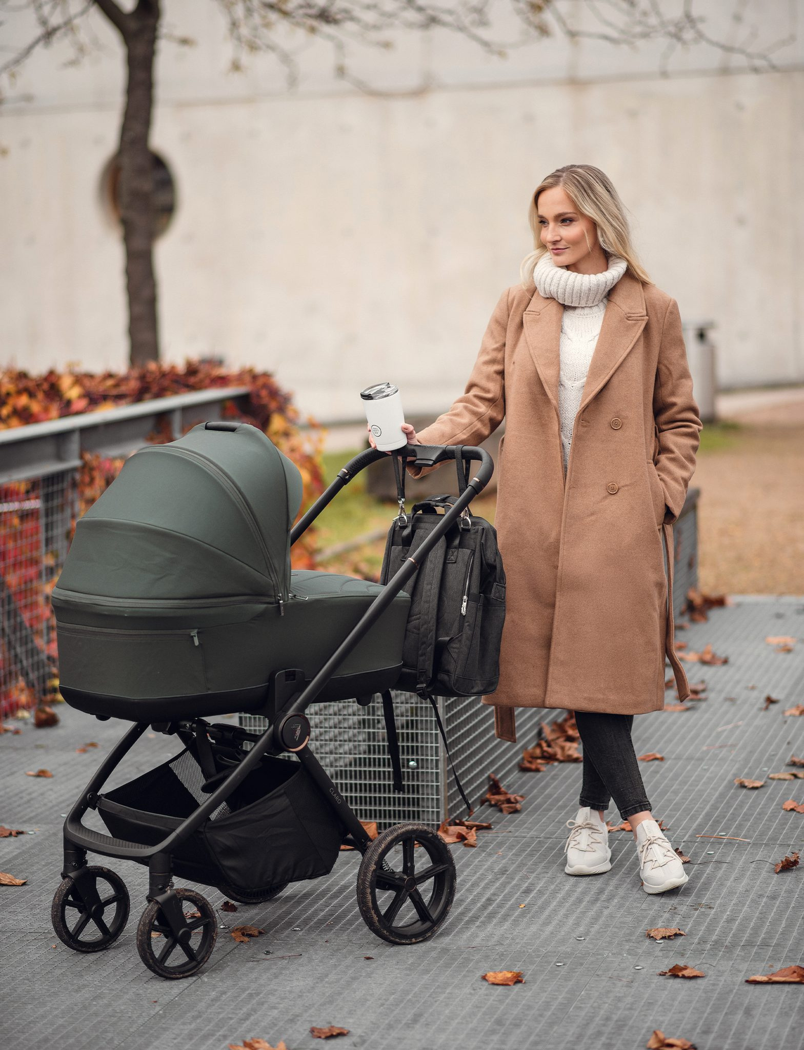 • Pevné popruhy se zesílenými karabinami k uchycení na kočárek