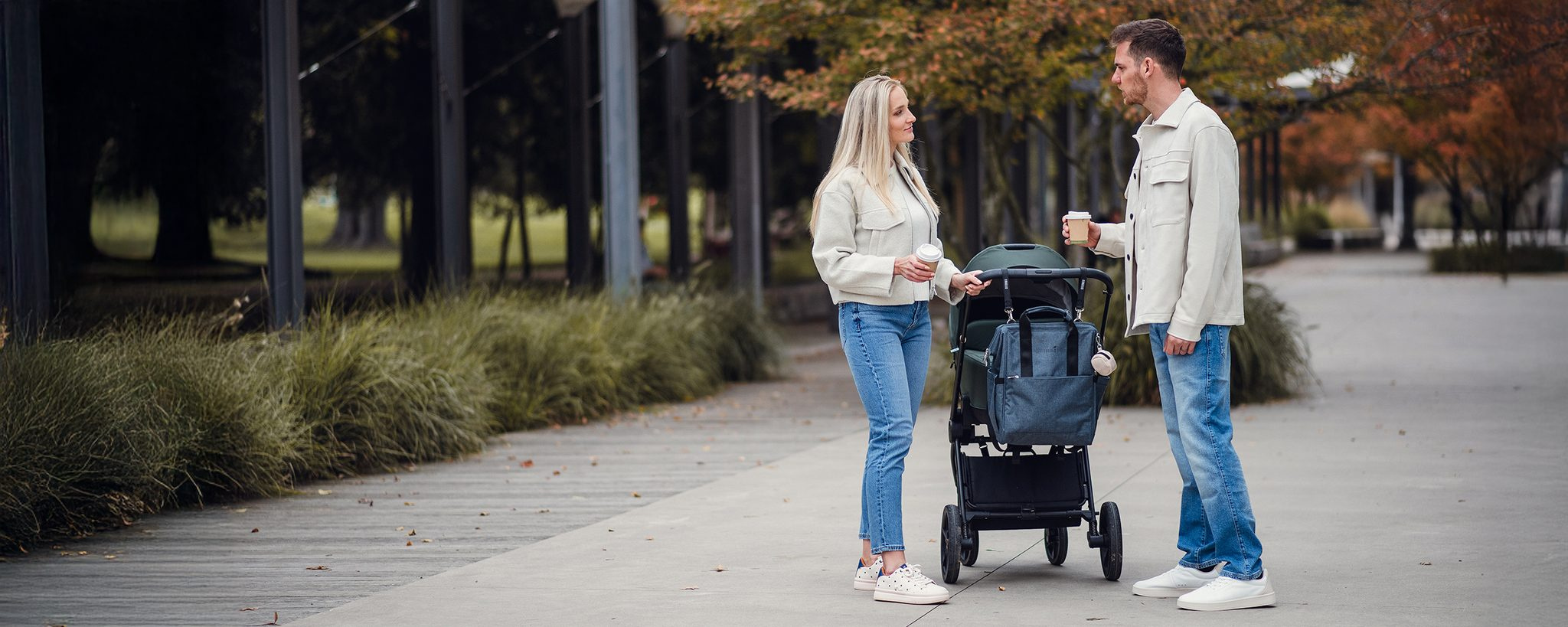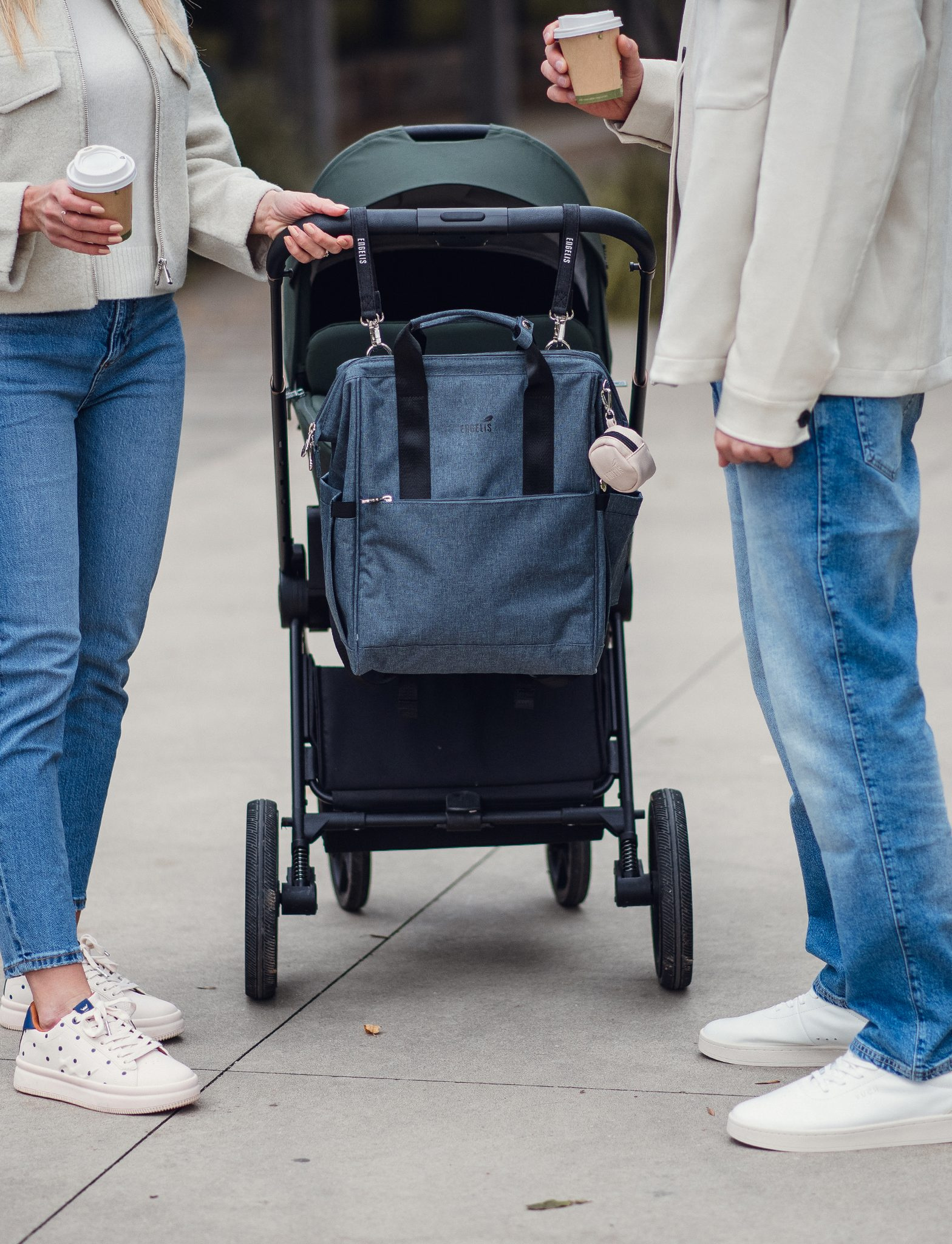 - Pevné popruhy se zesílenými karabinami k uchycení na kočárek