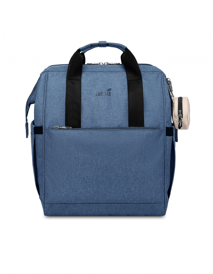 Batoh, který má všechno na svém místě. Víc kapes znamená víc místa na lahvičku, svačinu i vlastní věci. Bytelné poutko zvládne každodenní zátěž a odnímatelná kulatá kapsička pojme dudlík, který chceš mít co nejrychleji po ruce. Praktický a odolný batoh připravený na všechno, co den přinese ať už jsi v pohybu po městě nebo na výletě s kočárkem.