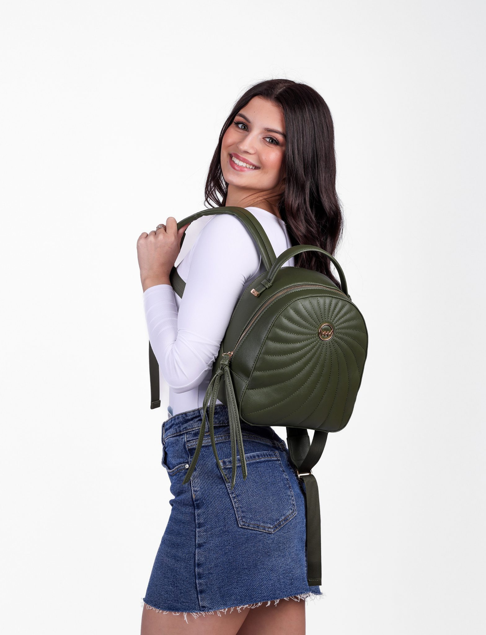 Tenhle malý batůžek si hraje na sluníčko – doslova. Nové prošívání ve tvaru paprsků z něj dělá rozzářený kousek, který Tě bude bavit nosit každý den. Díky pevnému tvaru a dlouhým koženkovým taháčkům se zip ovládá jako po másle, i když máš v jedné ruce kafe. A ten kovový detail zboku? Malé překvapení z kabelky Benita, co mu dodává extra jiskru.