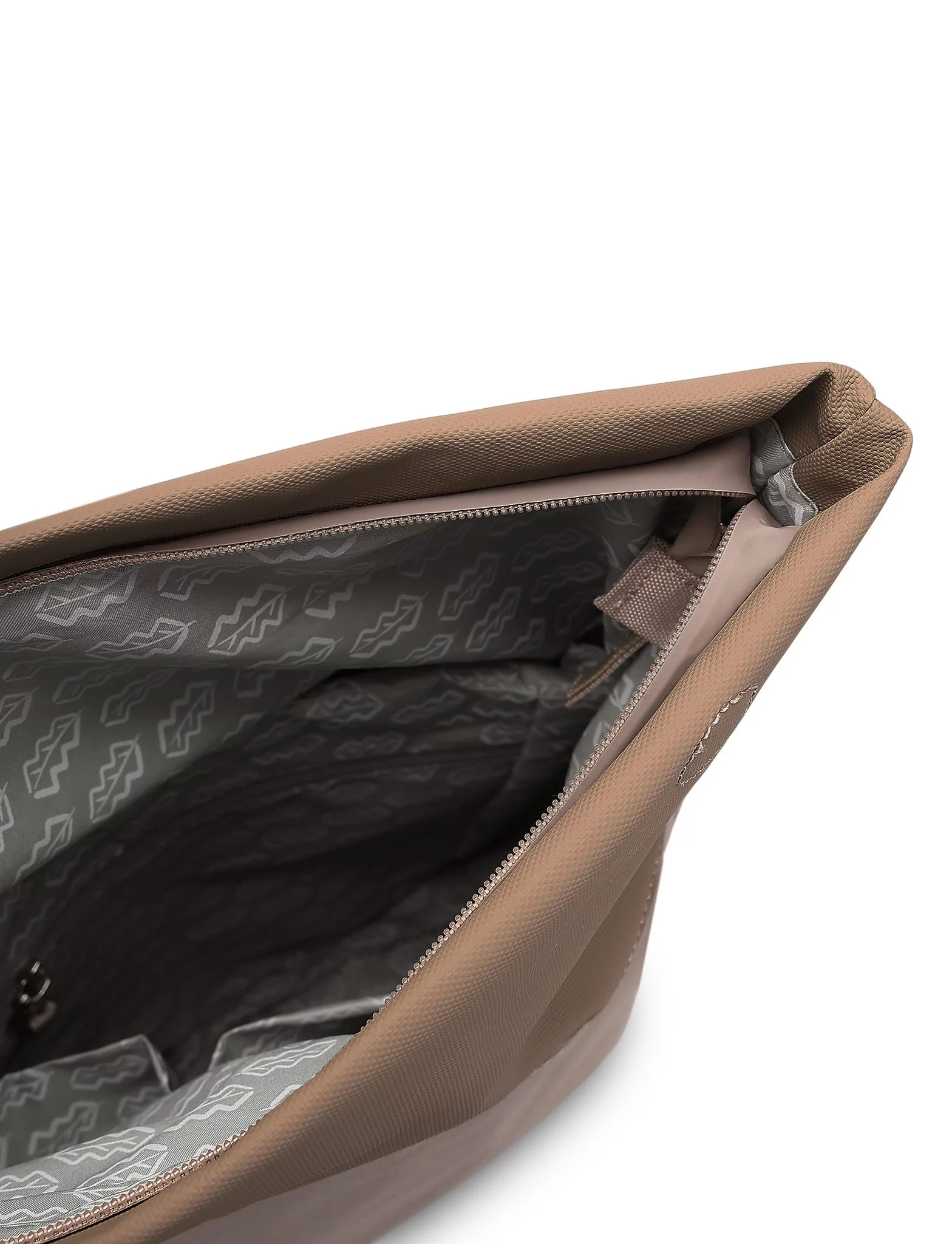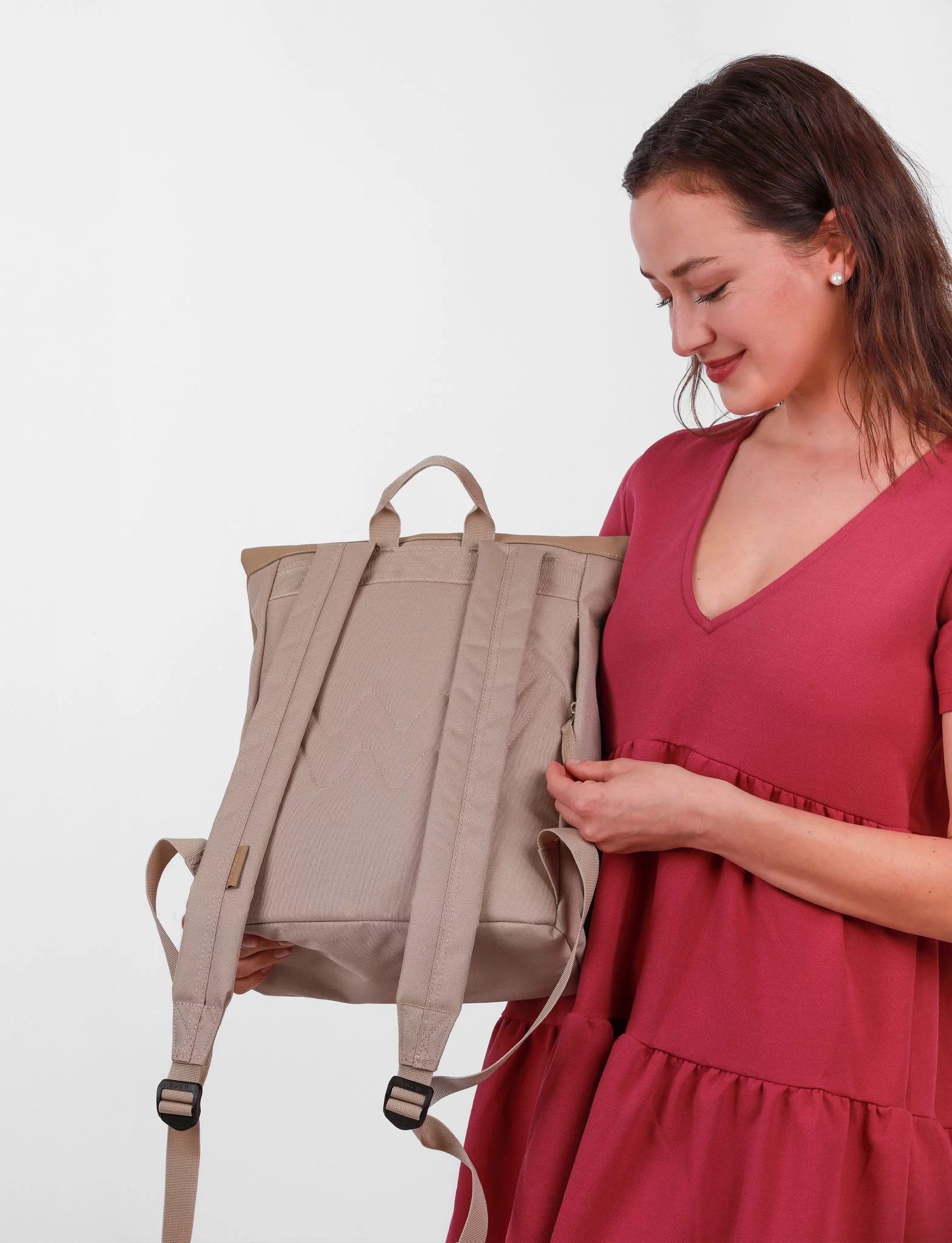 Stylový batoh, který myslí prakticky i ekologicky. Díky zipu a voděodolné klopě s magnetem si snadno přizpůsobíš jeho velikost podle toho, kolik toho zrovna neseš. Dvě přední kapsy pojmou všechno, co chceš mít hned po ruce. Pohodlí zajišťují polstrovaná záda i popruhy a RPET materiál zase potěší planetu.