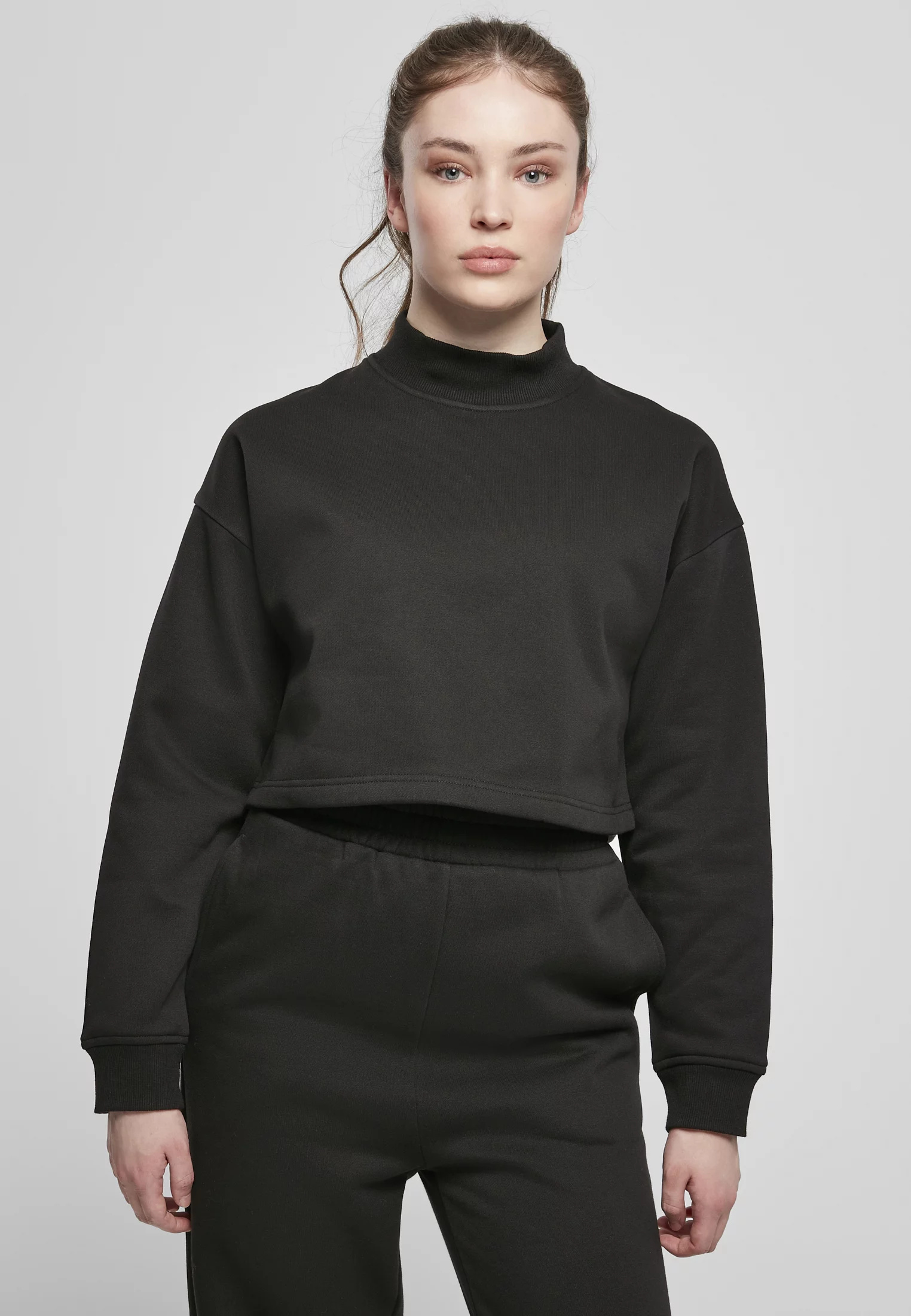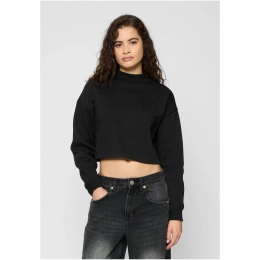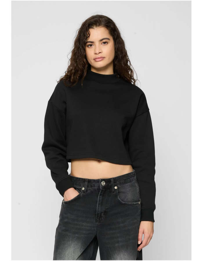 Tato dámská mikina vyrobená z hladkého česaného fleecu je stejně pohodlná jako sexy. Dlouhé rukávy se širokými žebrovanými manžetami a malým žebrovaným límcem hravě vyznívá zkrácený střih. Volný střih mikiny se širokými spadlými rameny se dokonale hodí k ležérnímu vzhledu.