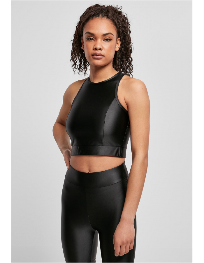 Sportovní a přiléhavý dámský top, který je vyroben z vysoce kvalitní metalické nylonové tkaniny. Výstřih racerback ponechává dostatek místa pro ramena a horní část zad, zatímco elastický pas zajišťuje ideální přizpůsobení spodní části. Dělící švy na předním díle a zkrácený střih doplňují atraktivní dámský top.