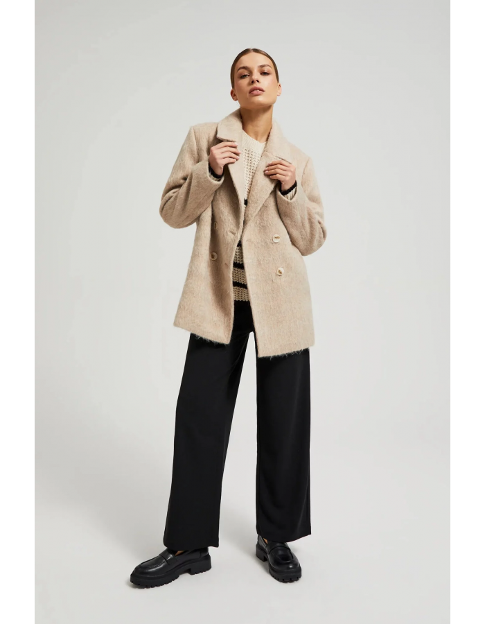 Dámský dvouřadý kabát MOODO - béžový Velikost: XS