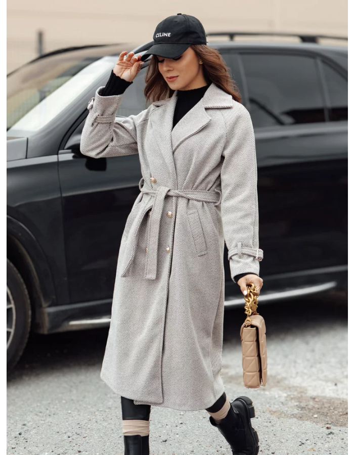 Stylový kabát s vázaným střihem, ideální na chladnější dny. Jeho elegantní střih a pečlivě vybrané detaily zajišťují, že dokonale doplňuje jak ležérní, tak elegantní stylizace. Pásek v pase zvýrazňuje postavu a vysoce kvalitní materiál zajišťuje pohodlí a eleganci na každý den.