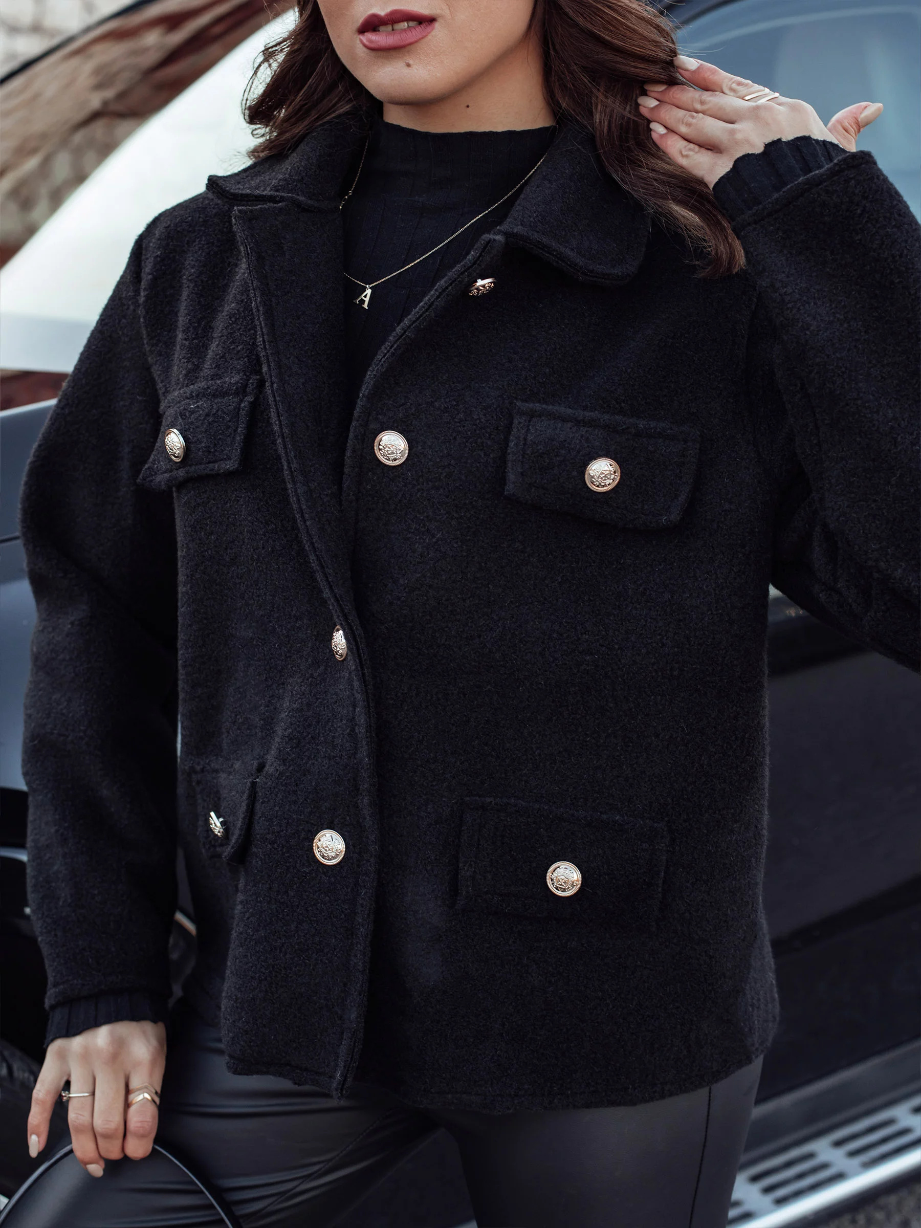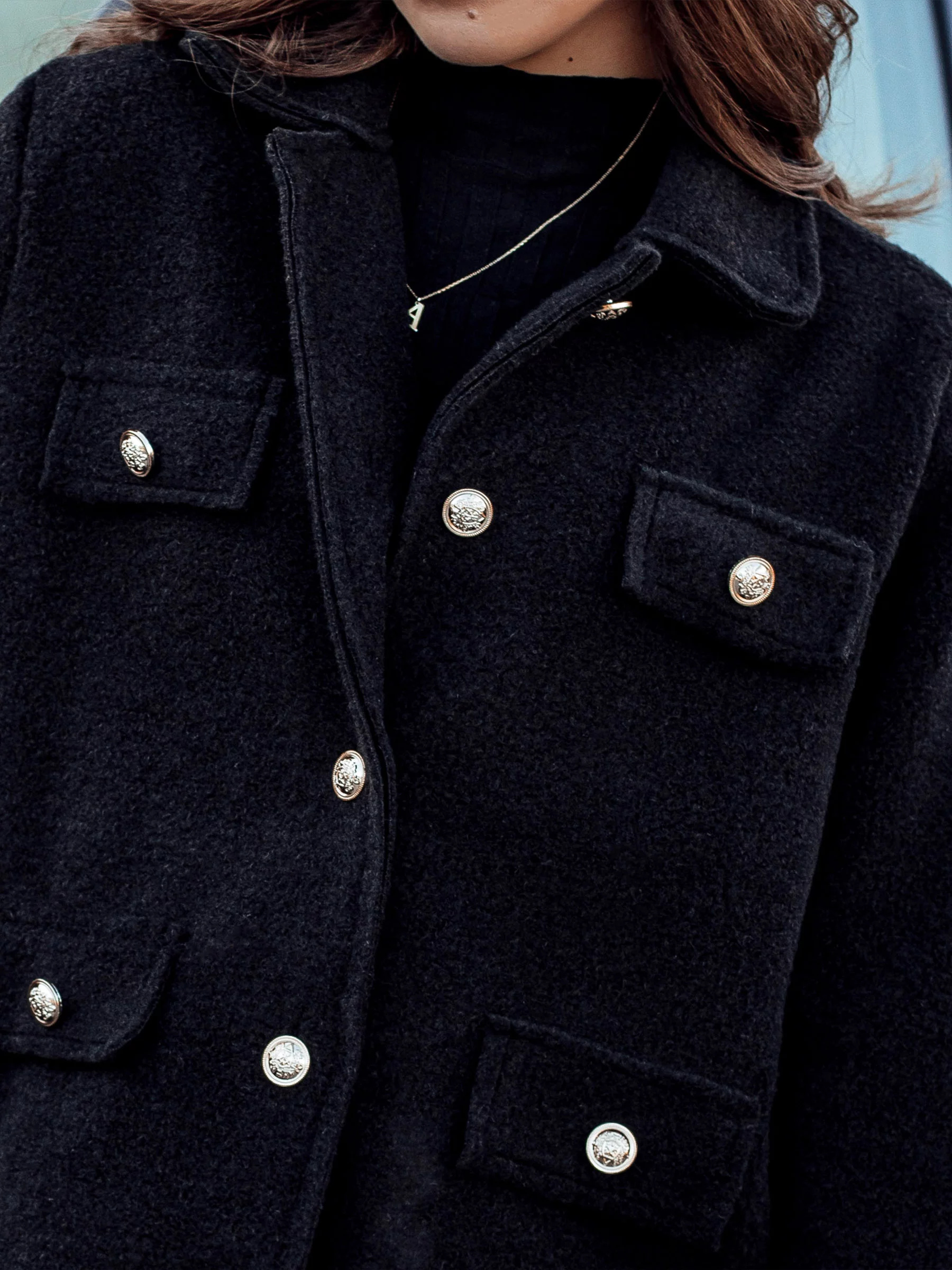 Kabát s moderním střihem, který se dokonale hodí k aktuálním trendům. Zlaté knoflíky mu dodávají eleganci a odolný, měkký materiál zaručuje pohodlí při nošení. Dokonalá nabídka pro ty, kteří si cení módního vzhledu spojeného s funkčností. Ideální na podzimní a zimní sezónu, jak pro každodenní nošení, tak i pro formálnější stylizace.