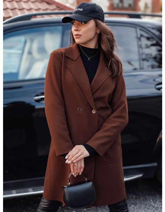 Dámský oversize kabát LINNORE dlouhý čokoládový Dstreet NY0705 Univerzální