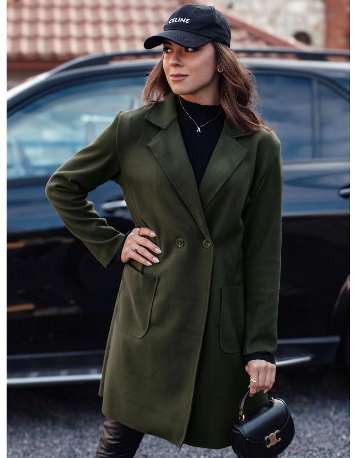 Dámský kabát oversize LINNORE dlouhý olivový Dstreet NY0704 Velikost: Univerzální