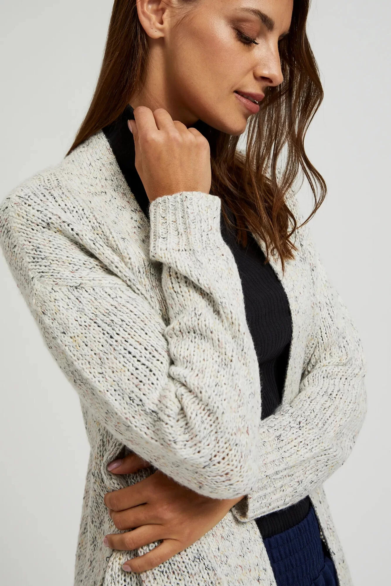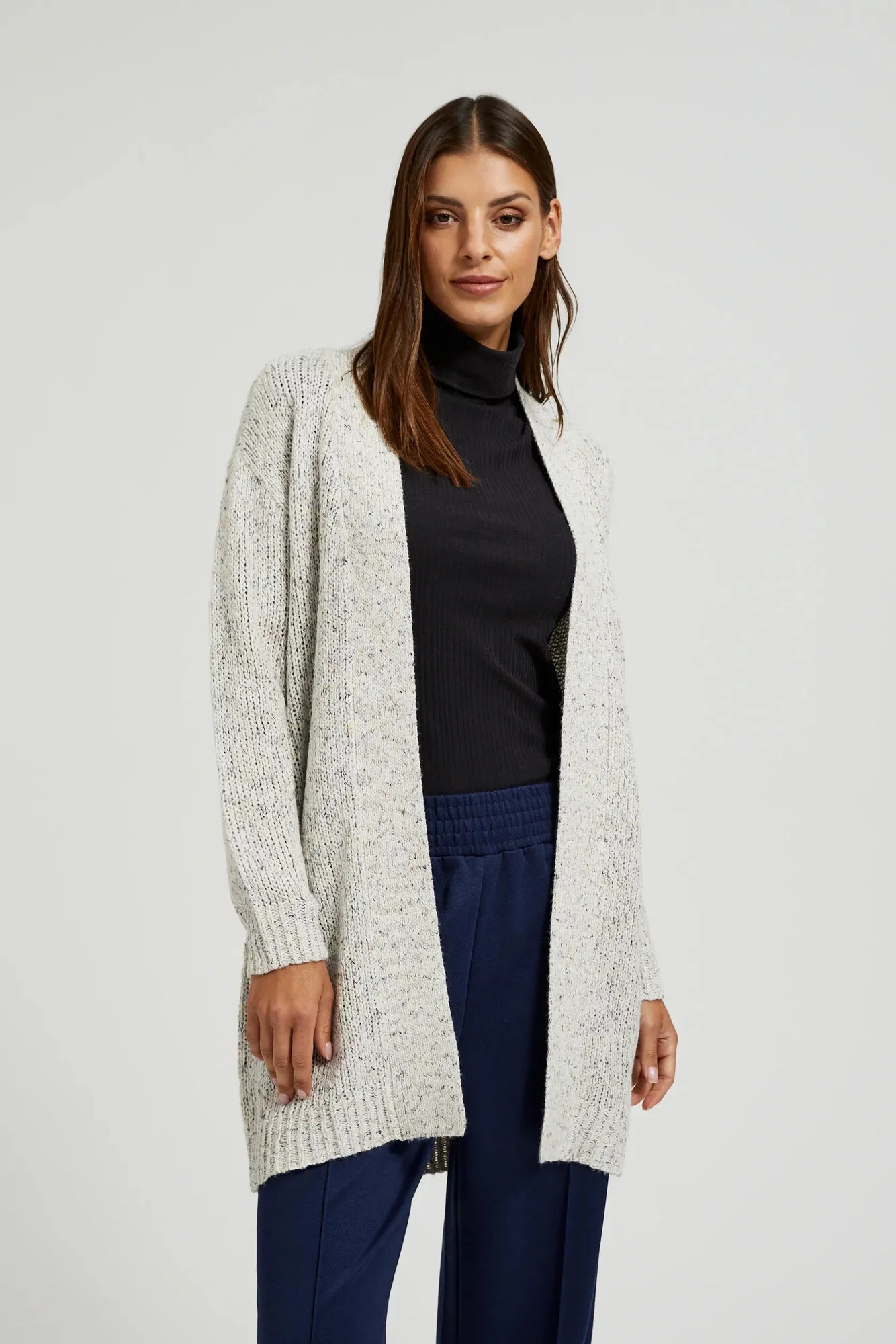 60%AKRYL, 20%BAVLNA, 20%POLYESTER Šedý dámský svetr je ideálním doplňkem do tvého šatníku. Vyrobený z akrylu, tento kardigan je nejen mimořádně měkký a příjemný na dotek, ale také velmi pohodlný. Delší střih a volný střih zajišťují, že se skvěle přizpůsobí každé postavě, a dlouhý rukáv a výstřih do V mu dodávají eleganci. Ten svetr se skvěle hodí na večerní setkání nebo pro každodenní stylizace. Dokonale se hodí jak k džínům, sukni, tak i k elegantním kalhotám.