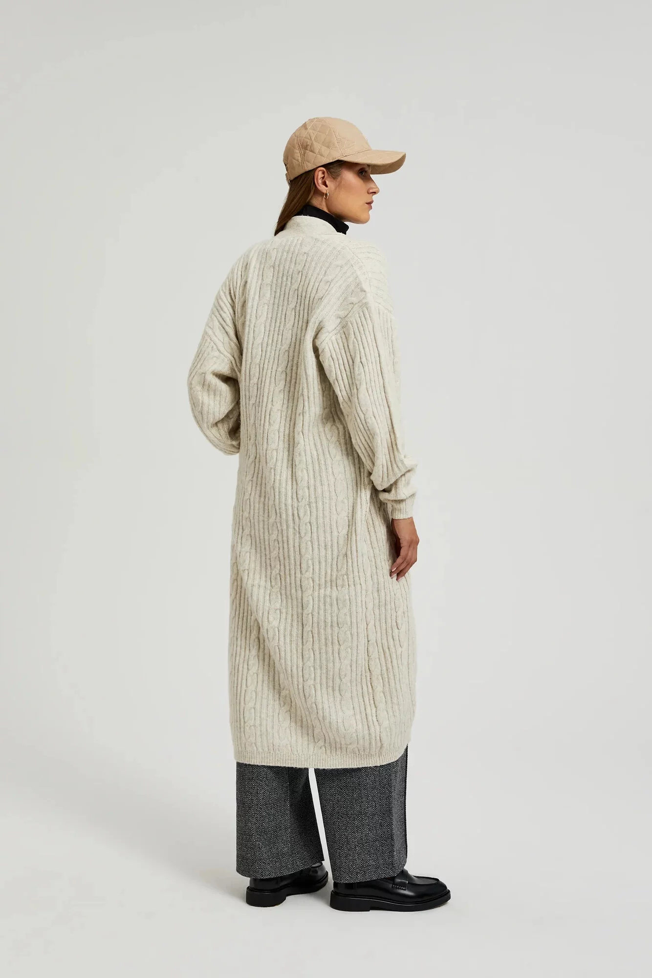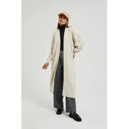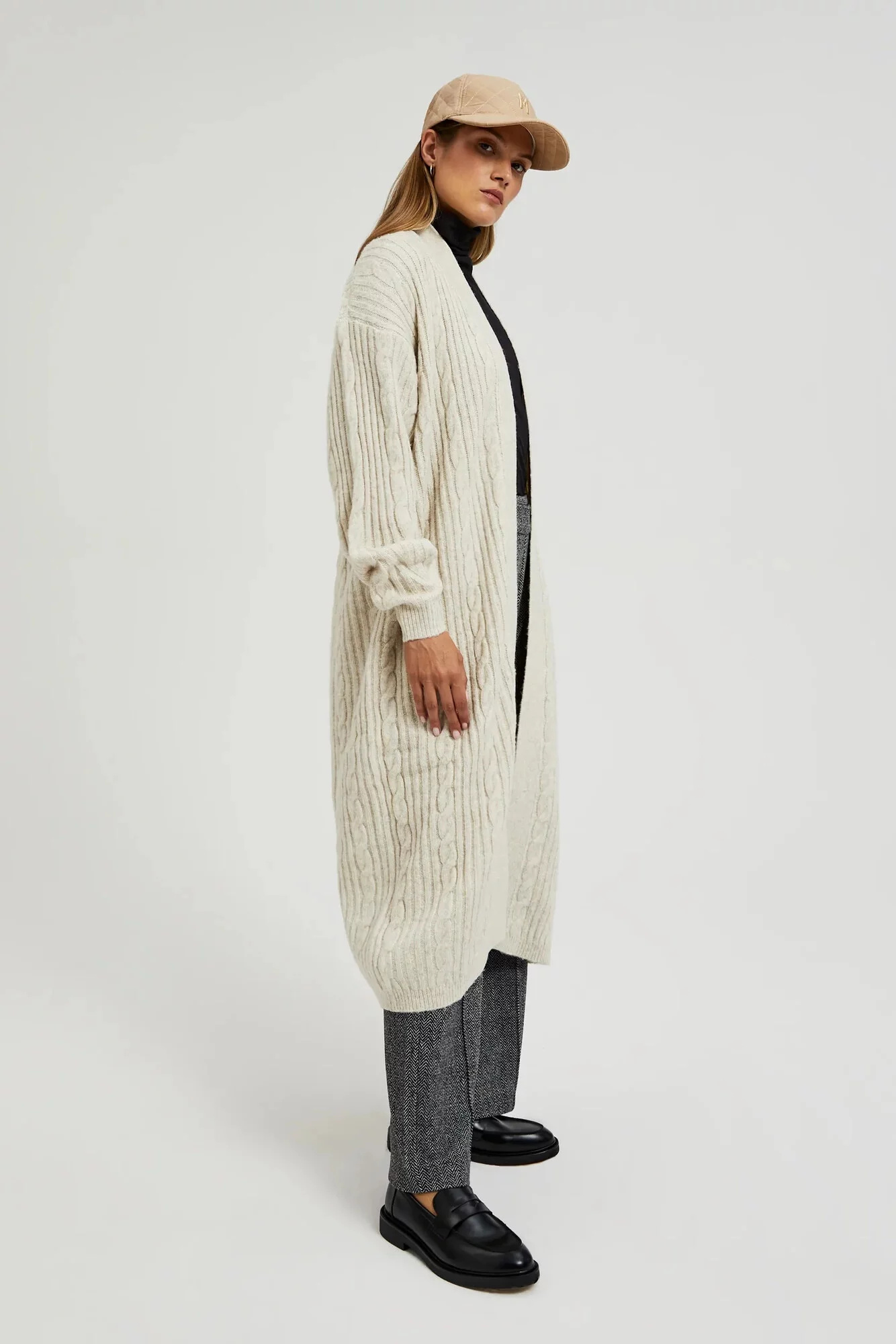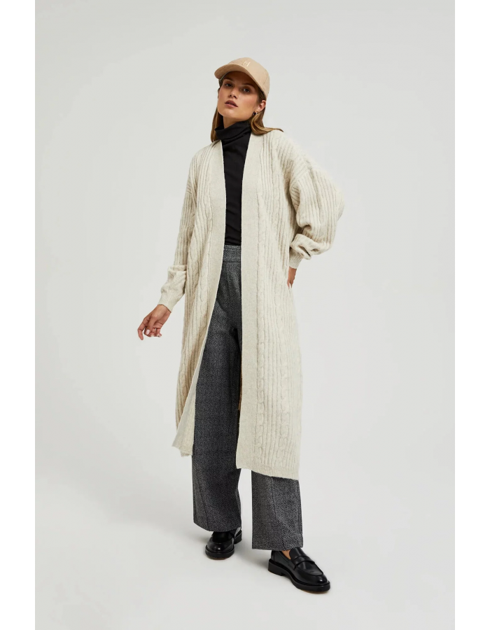 50% RECYKLOVANÝ POLYESTER, 25% POLYESTER, 25% AKRYL Svetr v béžovém odstínu je skvělou volbou pro chladnější dny. Kardigan, který lze rozepnout, je delší a volný, což zajišťuje, že se dokonale přizpůsobí každé postavě. Dlouhé rukávy a výstřih do V dodávají eleganci a činí svetr univerzálním a vhodným pro mnoho příležitostí. Tento svetr se dokonale hodí jak k běžným stylizacím, tak na setkání s přáteli či rodinou. Lze jej nosit jak k kalhotám, tak k sukni nebo šatům. Díky svému klasickému střihu se skvěle hodí k různým prvkům šatníku, dodávajíc stylizaci výjimečný charakter.