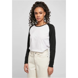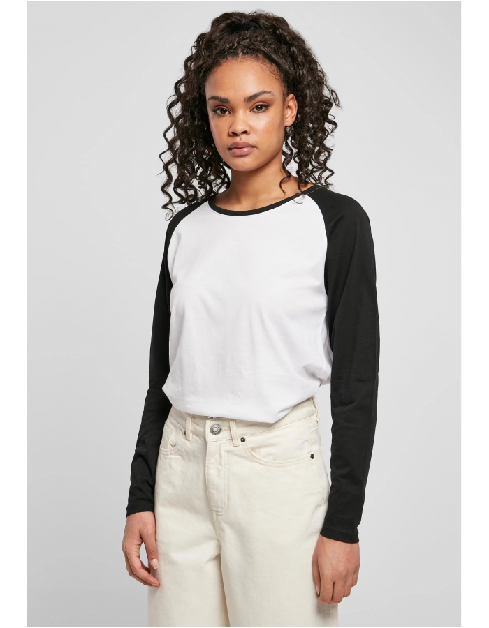 Jako každodenní sportovní kousek oblečení se tento dámský raglánový dlouhý rukáv prezentuje bezešvými rameny a kontrastními rukávy. Vzhled topu dotváří žebrovaný výstřih, který je rovněž proveden v kontrastní barvě. Dámská košile byla vyrobena z bavlny šetrné k pokožce a má pravidelný střih.