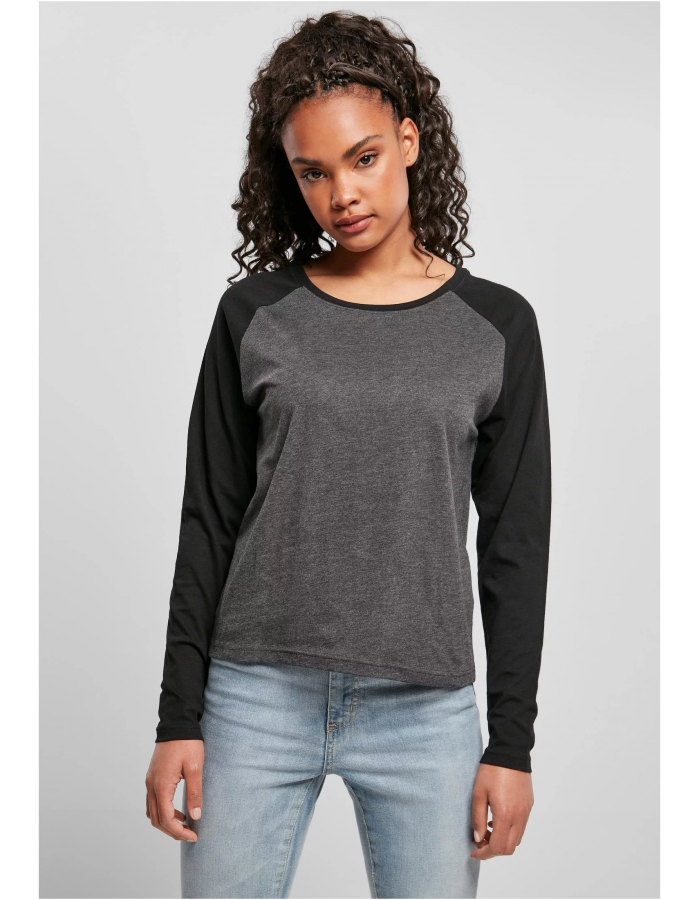 Dámský kontrastní raglánový dlouhý rukáv uhlově/černý L