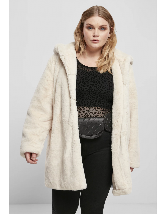 Dámský medvídkový kabát s kapucí v bílé barvě Grösse: L