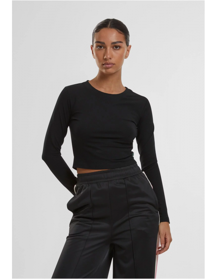 Dámský top je skromný základ každého městského šatníku. Nabízí klasický vzhled s dlouhými rukávy a kulatým výstřihem. Krátký, oříznutý vzhled dodává módnímu stylu akcent. Úzký střih s dlouhým rukávem je vyroben ze strečové organické bavlny šetrné k pokožce a obsahuje příslušný štítek.