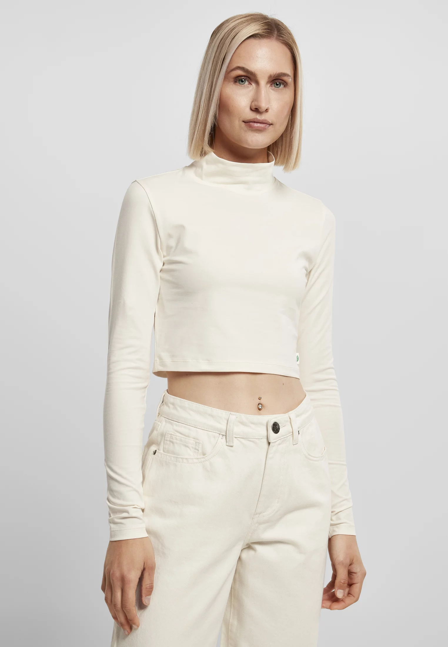 Klasický reinterpretovaný – tento zkrácený dámský top s dlouhými rukávy a malým elegantním rolákem zvýrazňuje pas a sedí těsně na postavě díky vysoce kvalitní organické strečové žerzejové látce. Dámská košile samozřejmě nabízí i příslušné ekologické označení.