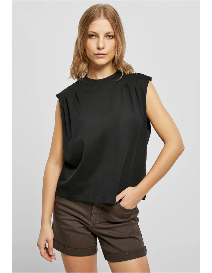 Sportovní, ležérní dámský top bez rukávů. Jeho velkorysé průramky lehce přesahují přes ramena a jsou také mírně zkosené – v souladu s jemným límcem. Plisovaná oblast ramen dodává další ženský akcent. Letní lehký dámský top je vyroben z organické bavlny šetrné k pokožce a je volného střihu. V neposlední řadě je vybavena řádným bio značením.