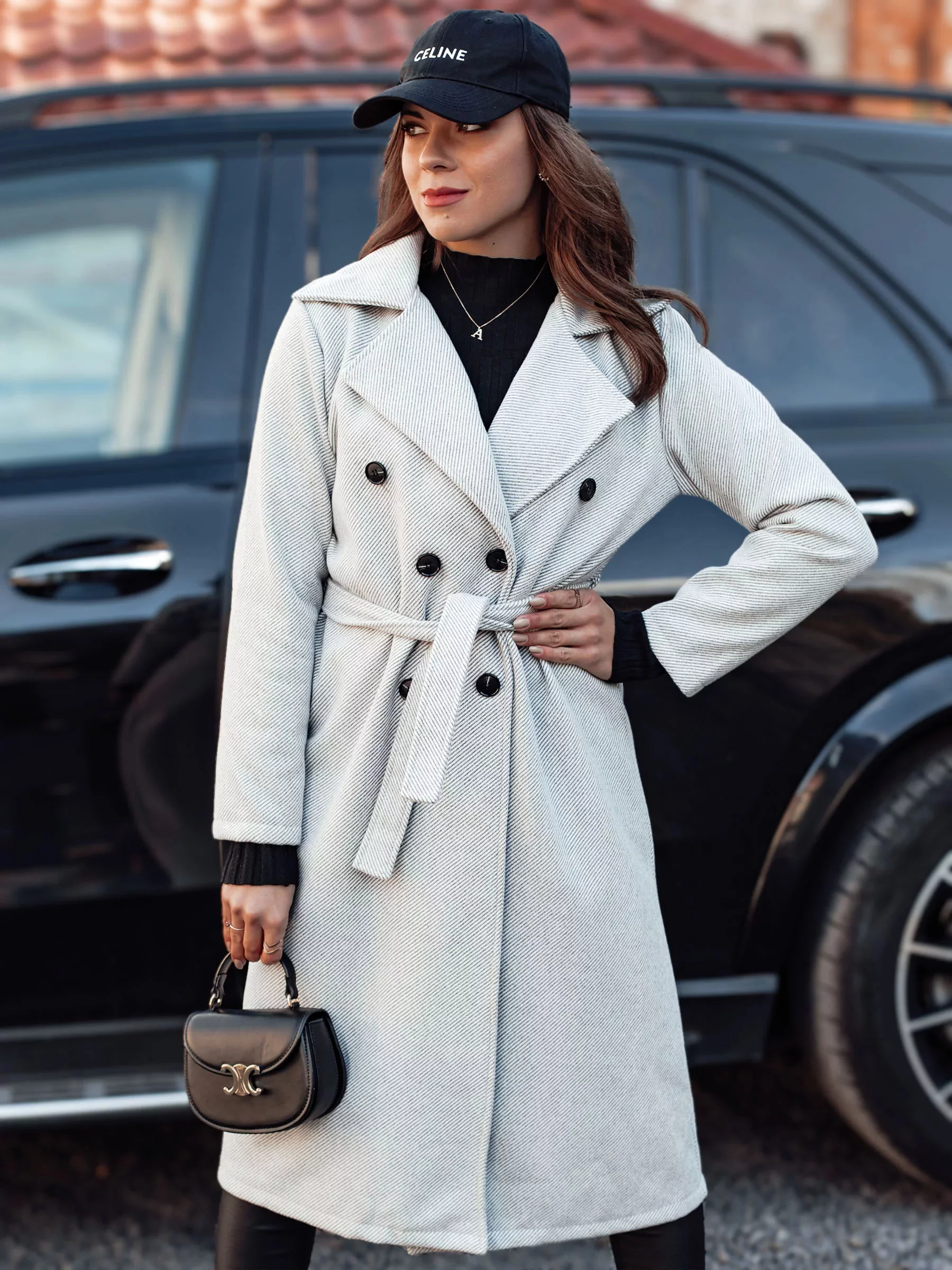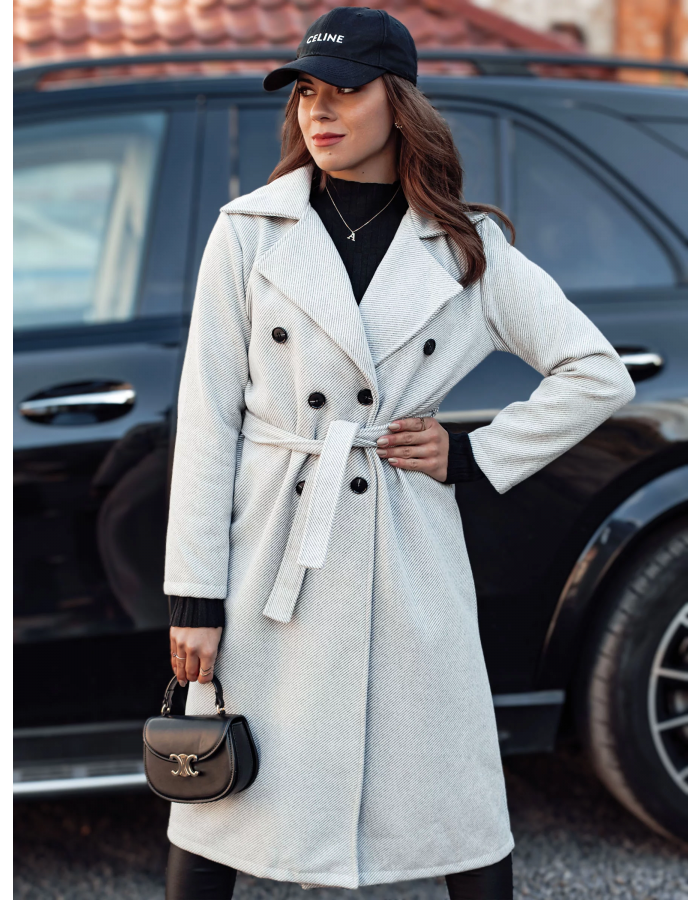 Elegantní kabát, který spojuje klasiku s moderností, ideální na chladnější dny. Vyrobený z mimořádně měkkého materiálu, zajišťuje pohodlí a styl zároveň. Praktický pásek zdůrazňuje pas a minimalistický design zajišťuje, že kabát skvěle ladí jak s ležérními, tak i elegantními outfity.