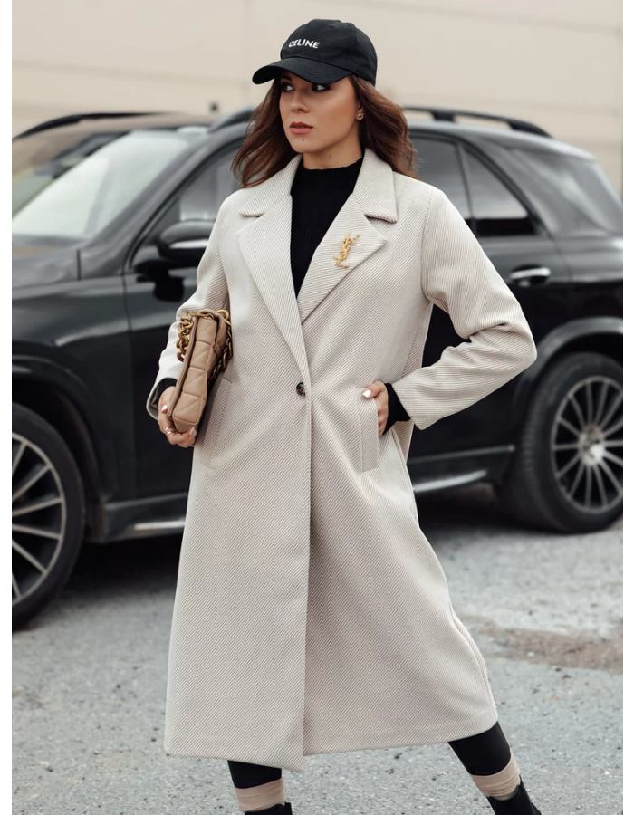 Stylový kabát klasického střihu, který dokonale doplní každý podzimní a zimní outfit. Elegantní linie a vysoce kvalitní tkanina zajišťují pohodlí při nošení a vynikající vzhled. Dlouhý střih a široký límec dodávají celku výjimečný charakter, spojující styl s funkčností. Perfektní volba na chladnější dny, hodící se jak k běžným, tak i k formálnějším stylizacím.