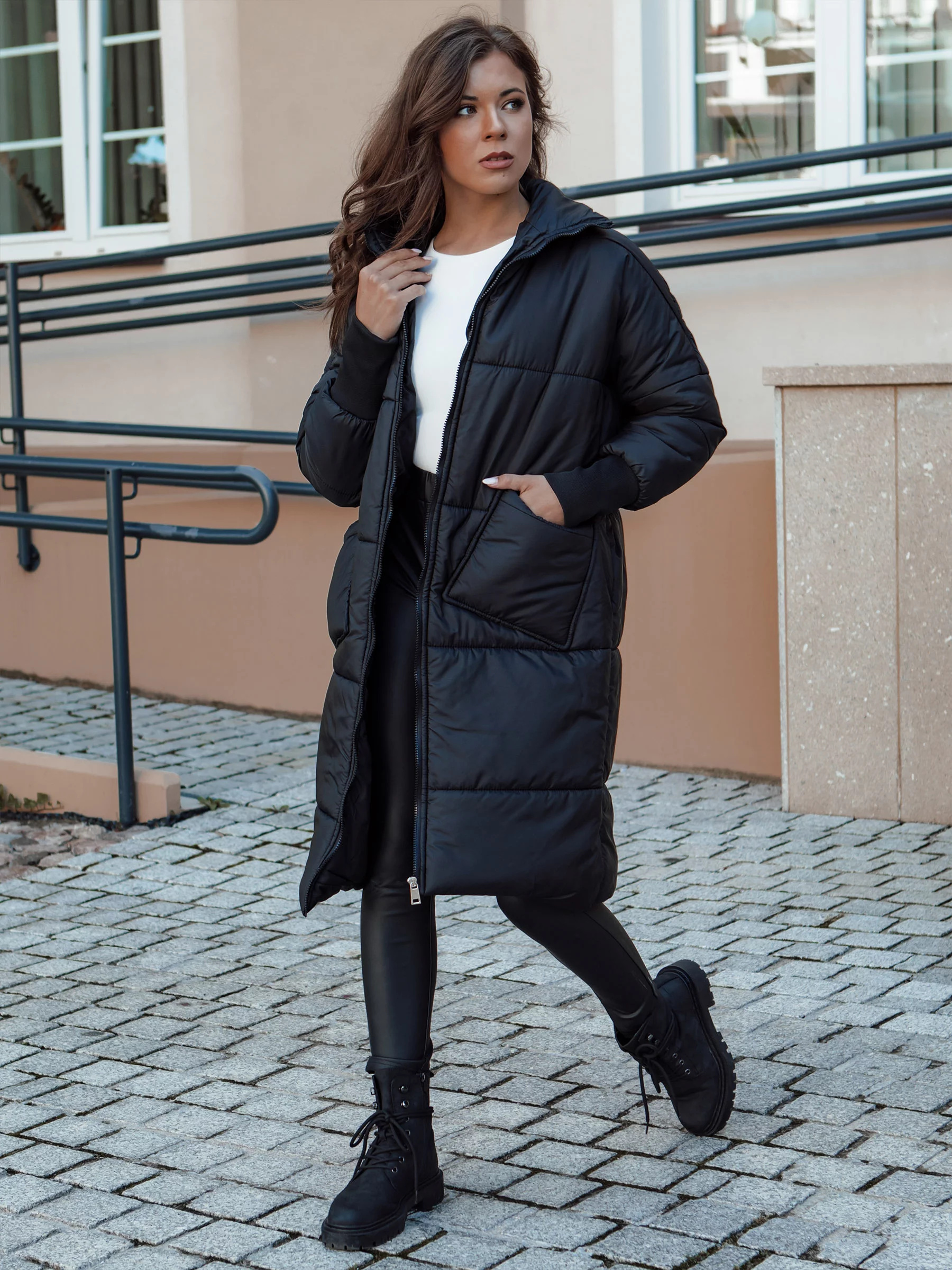 Dámský oversize kabát NADIA prošívaný s kapucí černý Dstreet TY4542 Velikost: Univerzální