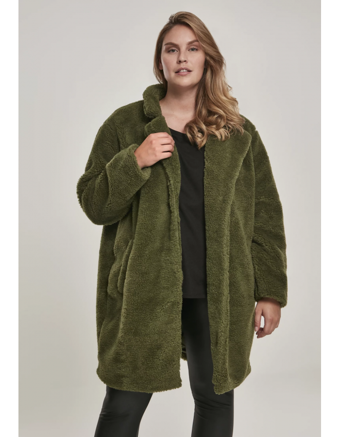 Dámský oversized Sherpa Coat olivový Grösse: L
