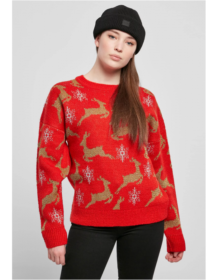 Dámský oversized vánoční svetr červená/zlatá Velikost: S