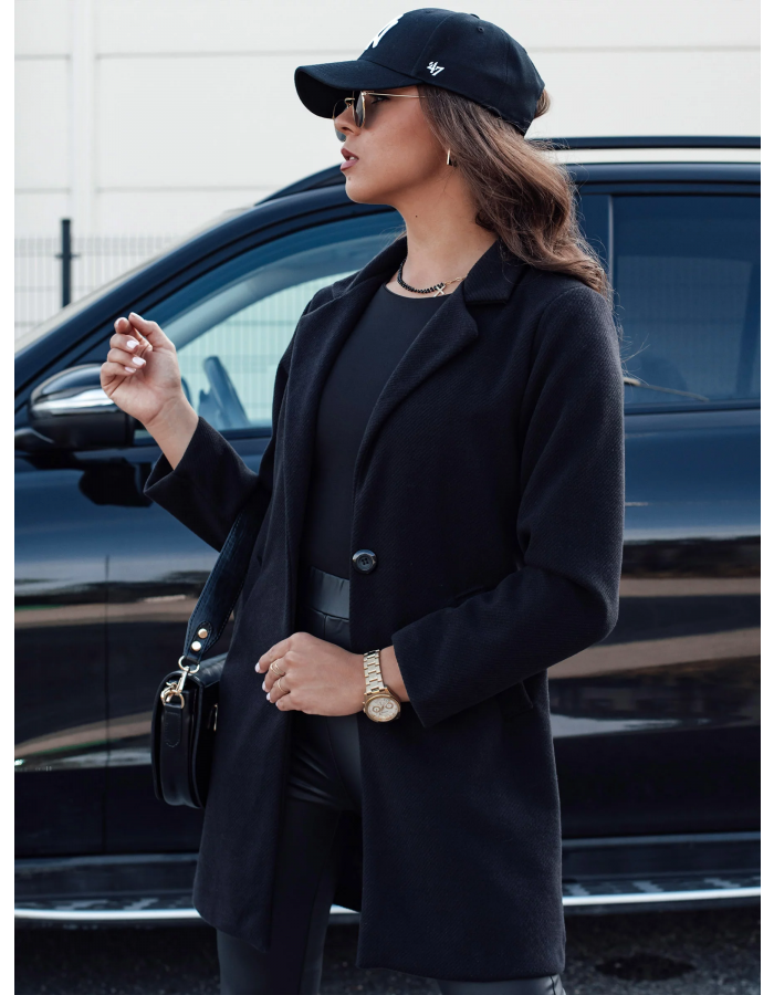 Dámský podzimní kabát jednobreasted LUGI zapínaný na knoflík černý Dstreet NY0670 Univerzální
