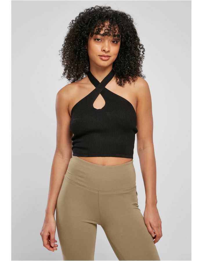 Tento sofistikovaný dámský úpletový top pro ženy nabízí ohňostroj detailů a je skutečnou módní lahůdkou. Ramínka se kříží přes dekolt a v zátylku se spojují. Tvoří hluboký kapkovitý výstřih a nechávají záda zcela volná. Sexy top má zkrácenou délku a samozřejmě slim střih. Použitý elastický úplet z jemné žebrované tkaniny (polyakryl, viskóza a nylon) zajišťuje poddajný komfort nošení.