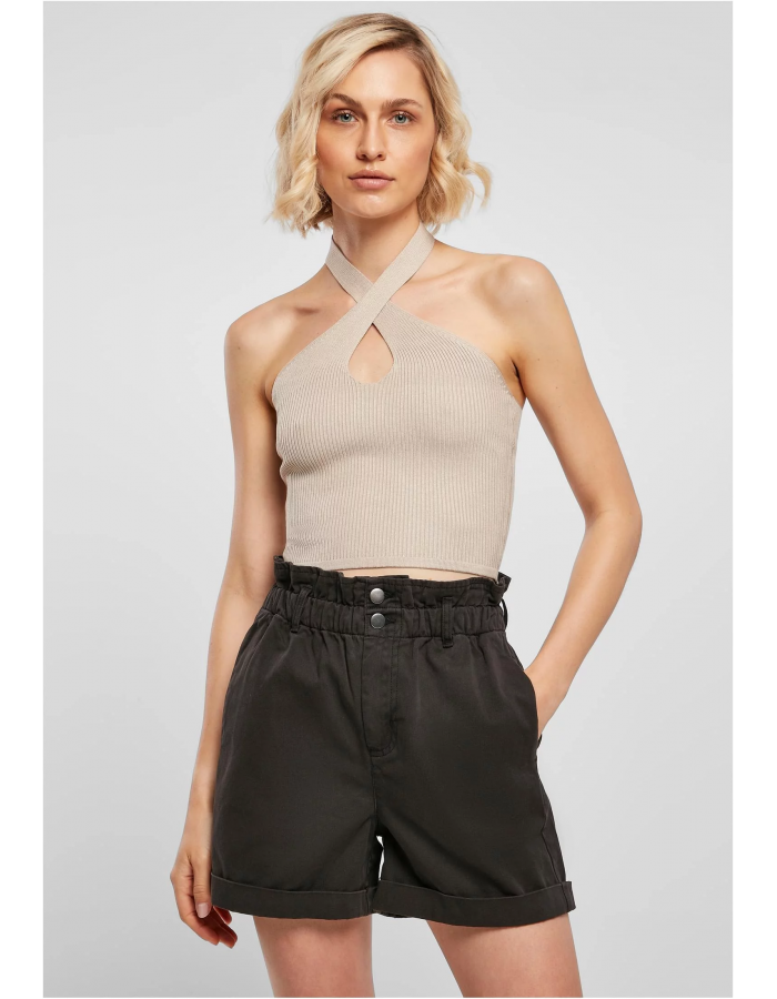 Tento sofistikovaný dámský úpletový top pro ženy nabízí ohňostroj detailů a je skutečnou módní lahůdkou. Ramínka se kříží přes dekolt a v zátylku se spojují. Tvoří hluboký kapkovitý výstřih a nechávají záda zcela volná. Sexy top má zkrácenou délku a samozřejmě slim střih. Použitý elastický úplet z jemné žebrované tkaniny (polyakryl, viskóza a nylon) zajišťuje poddajný komfort nošení.